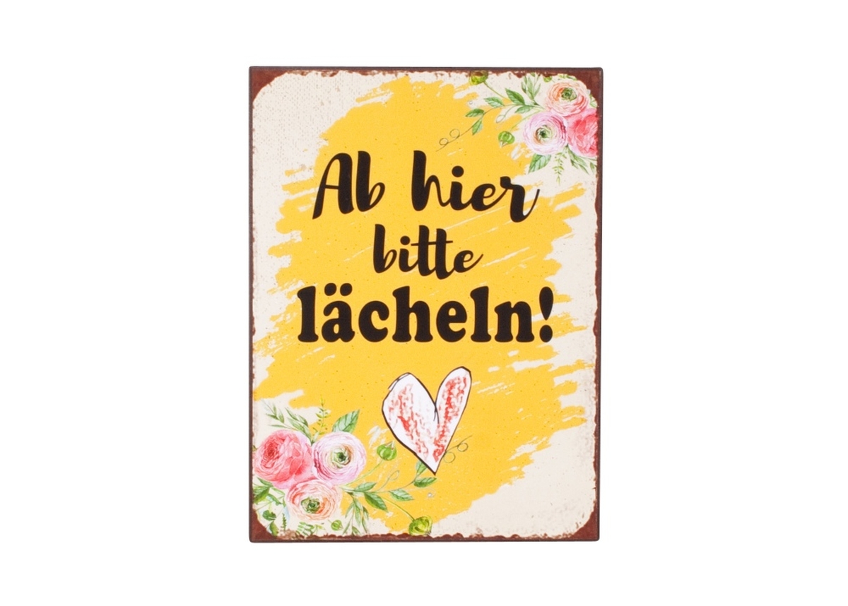 Deko Blechschild mit Spruch DARE, 'Ab hier bitte lächeln!', bunt, 26x35cm