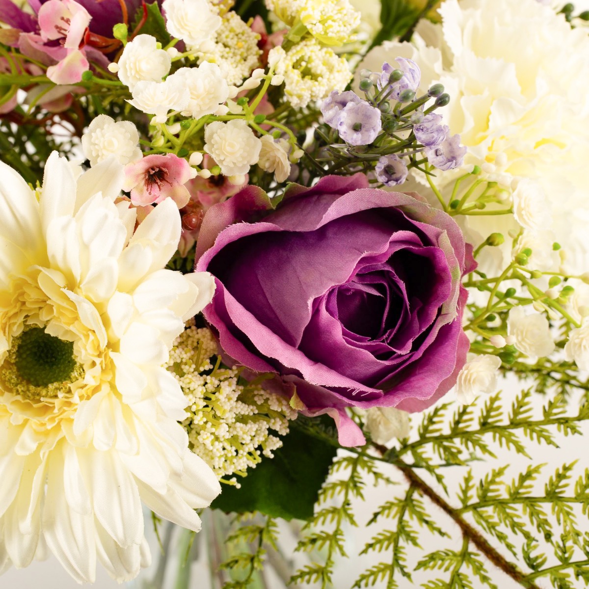 Deko Gerbera Strauß MALIA Rose, Nelke, weiß-lila, 40cm, Ø30cm