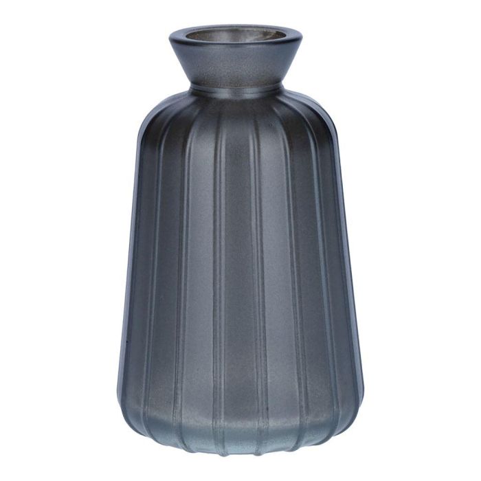 Deko Glasflasche TATIANA mit Rillen, grau-metallic, 11cm, Ø6,5cm