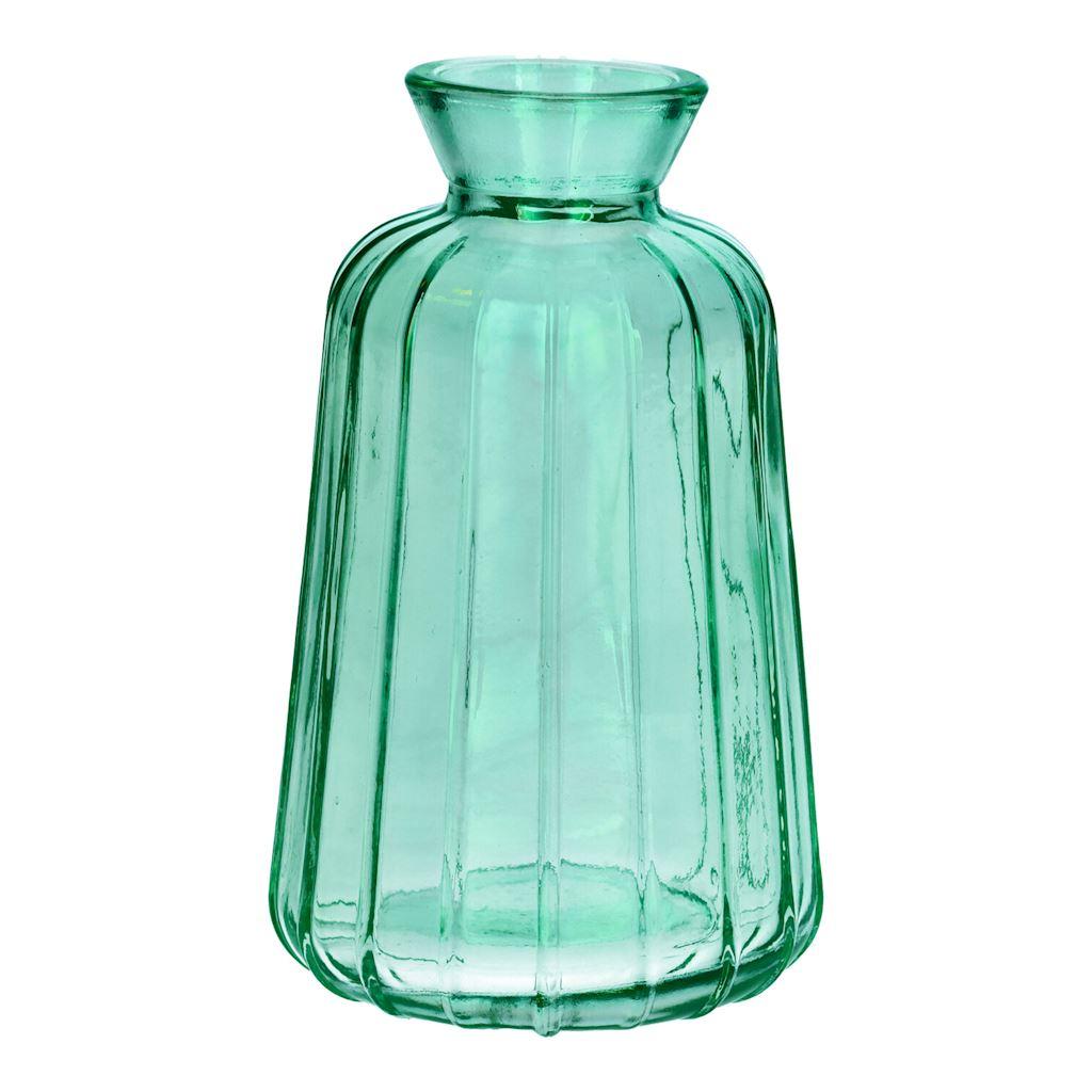 Deko Glasflasche TATIANA mit Rillen, türkis-klar, 11cm, Ø6,5cm