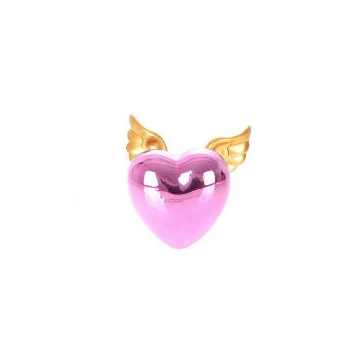 Deko Herz DIZZY mit Flügeln, aus Keramik, pink-gold, 11x9x4cm