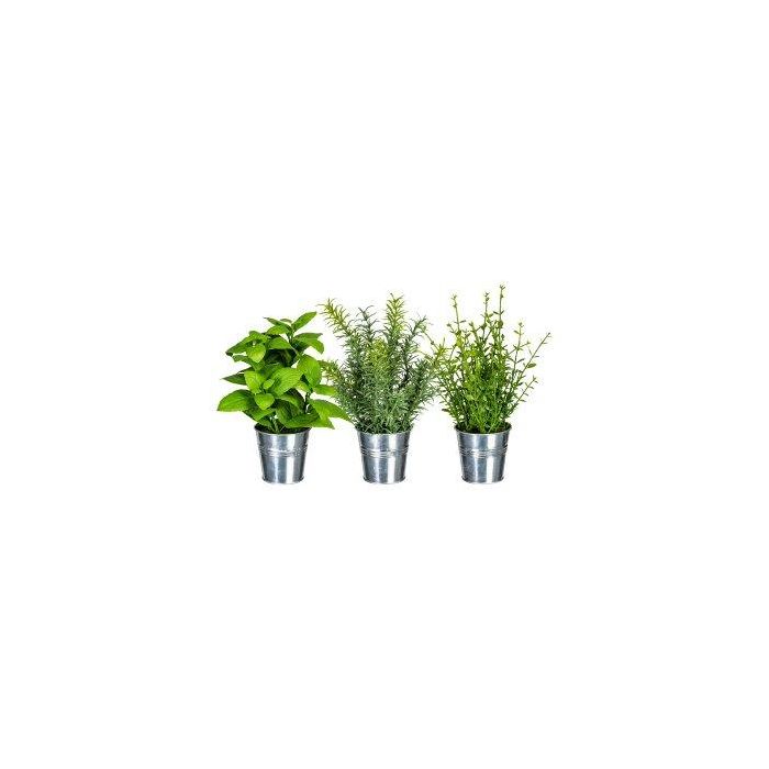 Deko Kräuter Mix DRILHO, Basilikum, Rosmarin, Thymian, 3 Stück, Zinktopf, grün, 25cm, Ø16cm