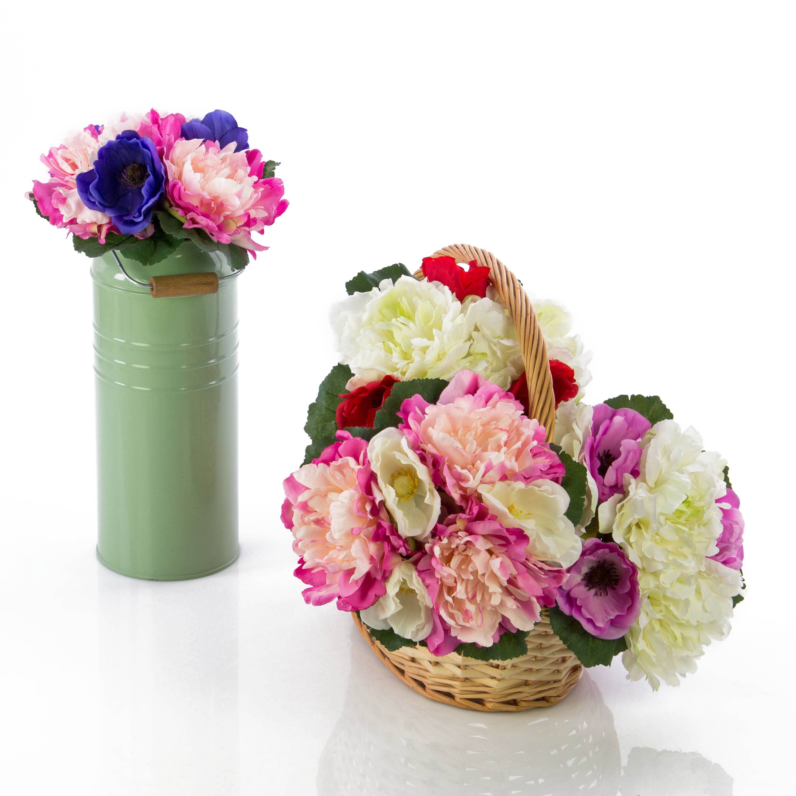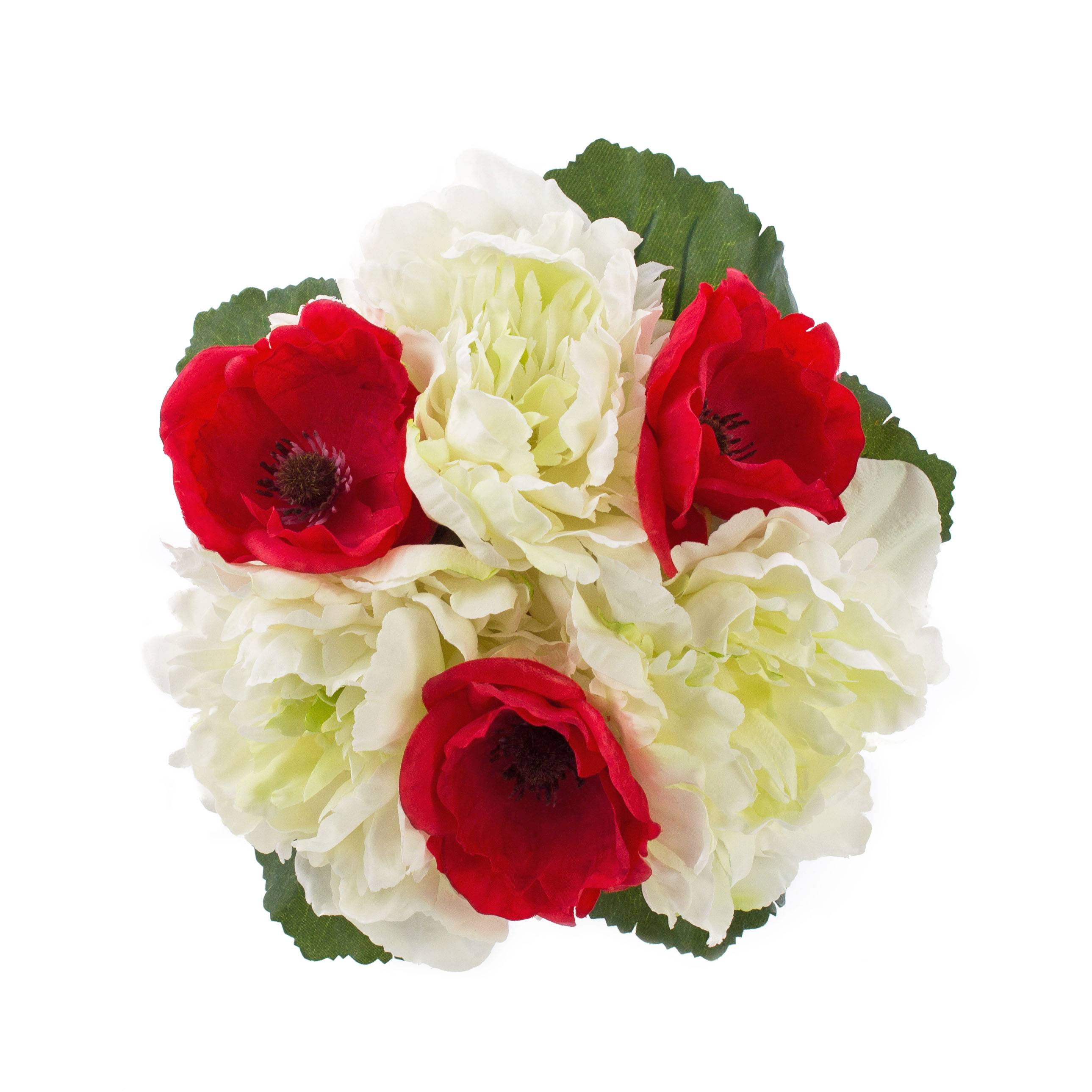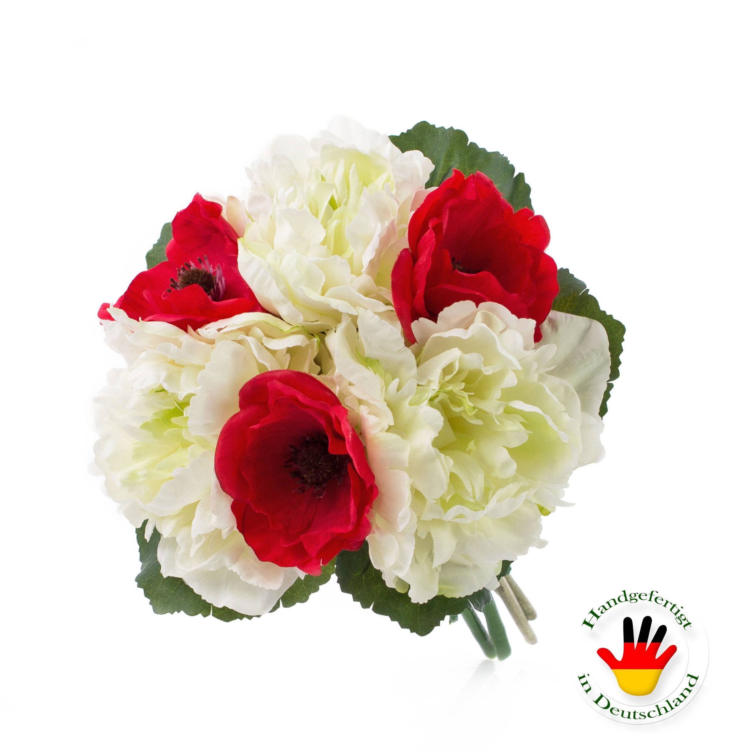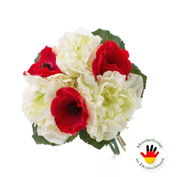 Deko Pfingstrosen Strauß MADDIE Anemone, weiß-rot, 30cm, Ø20cm