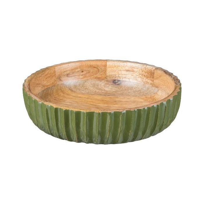 Deko Schale MARAMA aus Mangoholz, geriffelt, grün-natur, 6cm, Ø20cm