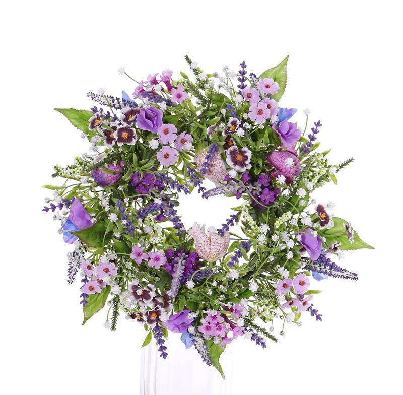 Künstlicher gemischter Kranz FEDORA von artplants mit einem Durchmesser von ca. 30 cm in Farbe lila. Der Kunst Kranz eignet sich für die Dekoration von Türen, Tischen und Wänden.