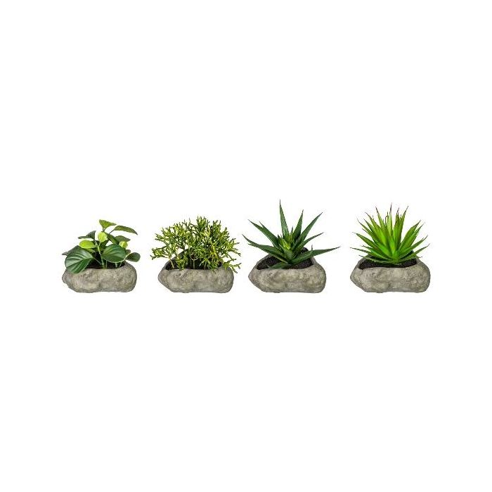 Deko Sukkulenten Gesteck TASTIKE im Polyresin Steintopf, 4 Stück, grün, 12-15cm
