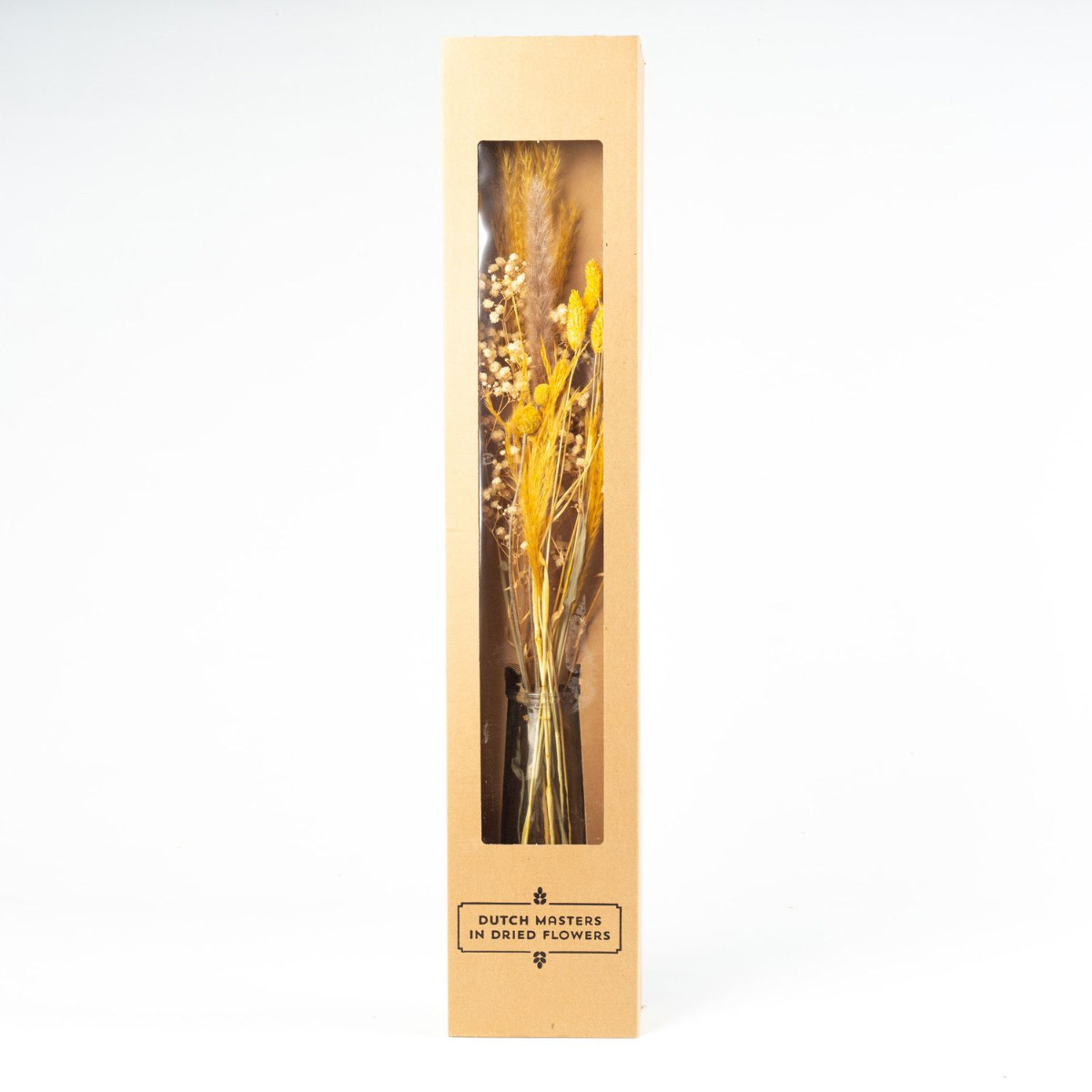 - Trockenstrauß in Flasche mit einer Höhe von 19 cm und einem Durchmesser von 6,5 cm zum Direkten Platzieren an der gewünschten Stelle