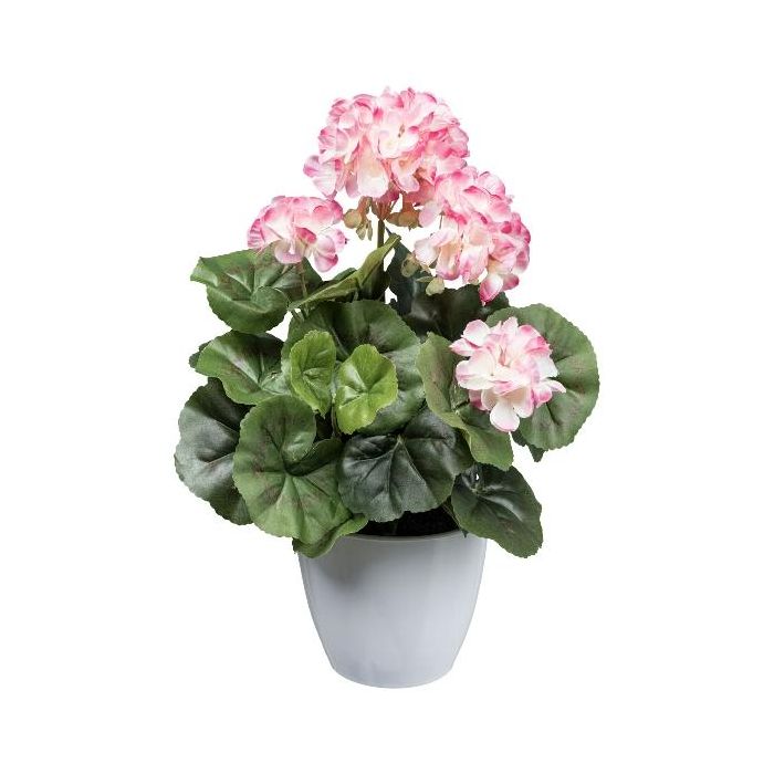 Dekoblume Geranie KLUMOR im Melamin-Übertopf, rosa-weiß, 35cm