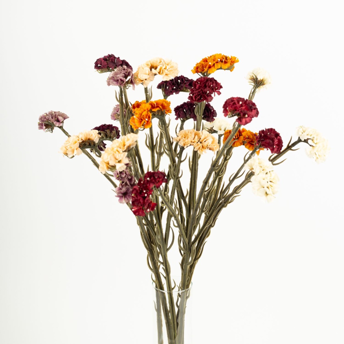 - In natürlich aussehender Trockenoptik, Stiel aus Kunststoff, Blüten aus Textilmatierial