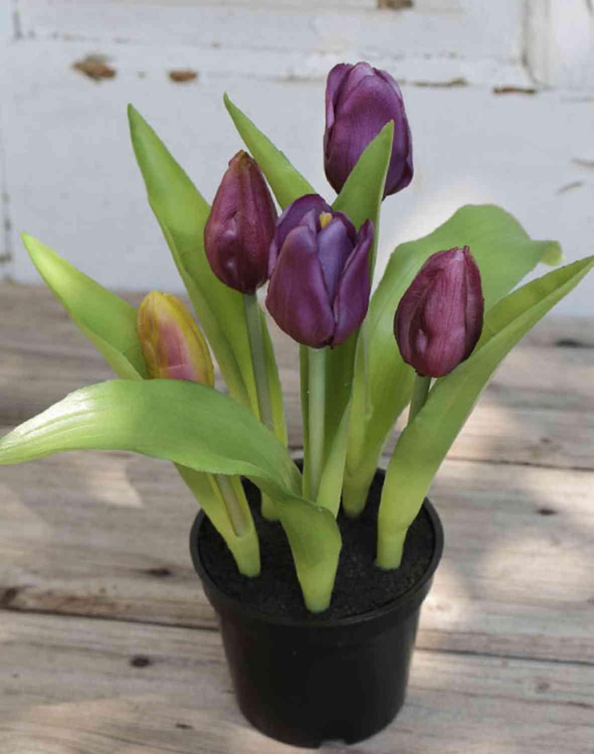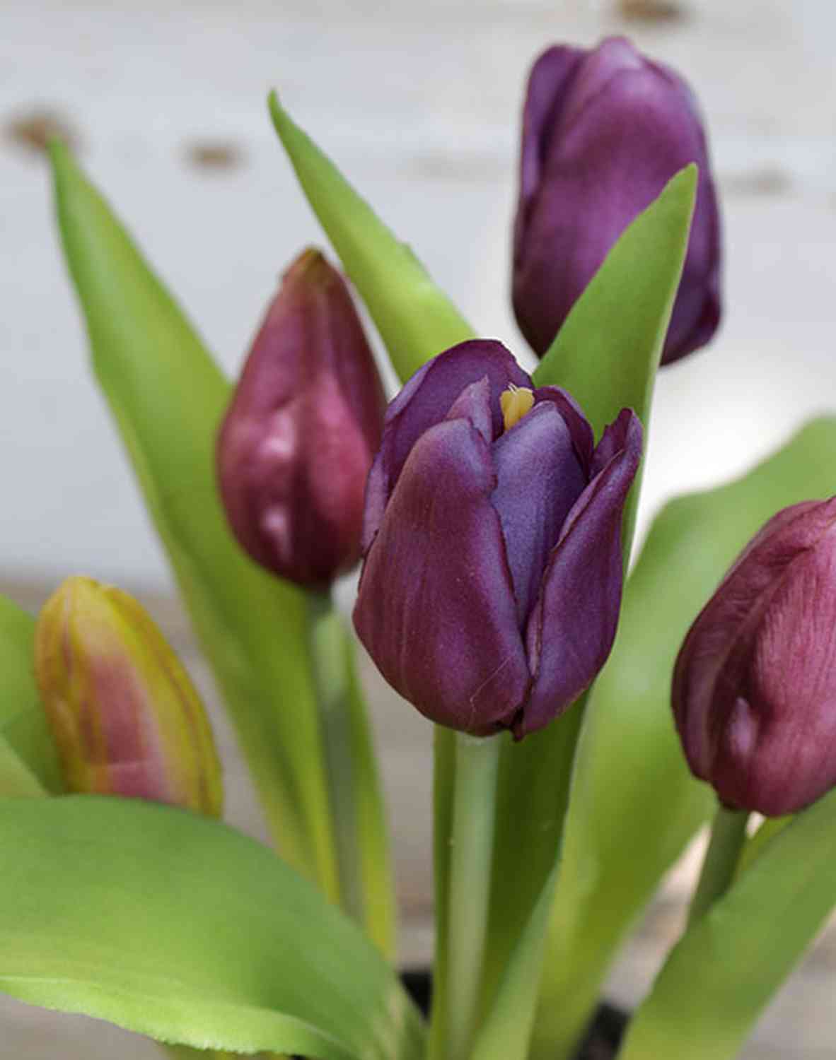 Dekoblume Tulpe LEANA im Dekotopf, violett-grün, 20cm, Ø2-4cm