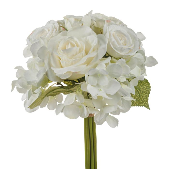 Dekoblumen Strauß FOUDILA, Rosen, Hortensien, weiß, 25cm