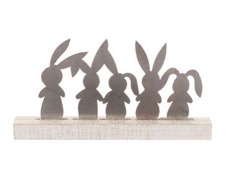 Dekofigur Metall Hasen CINCO auf Holzfuß, natur-grau, 35x5x18cm