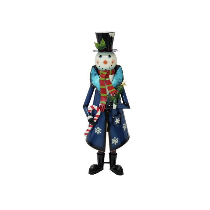 Die Schneefigur RUDIE aus Metall, ist in Handarbeit gefertigt und auf einer Bodenplatte befestigt.