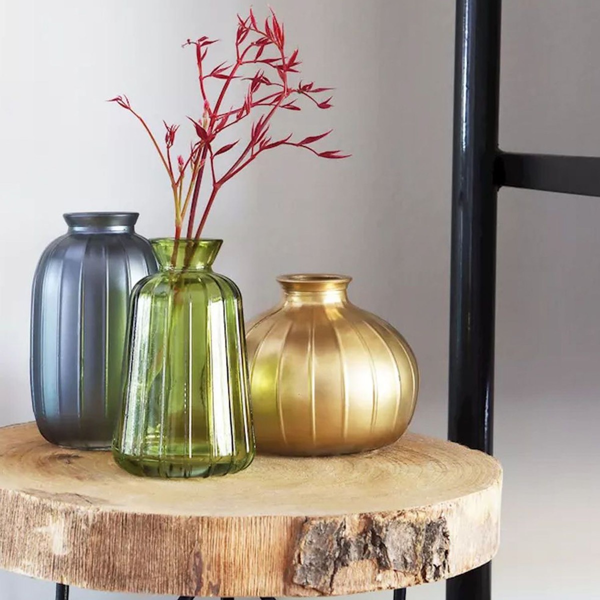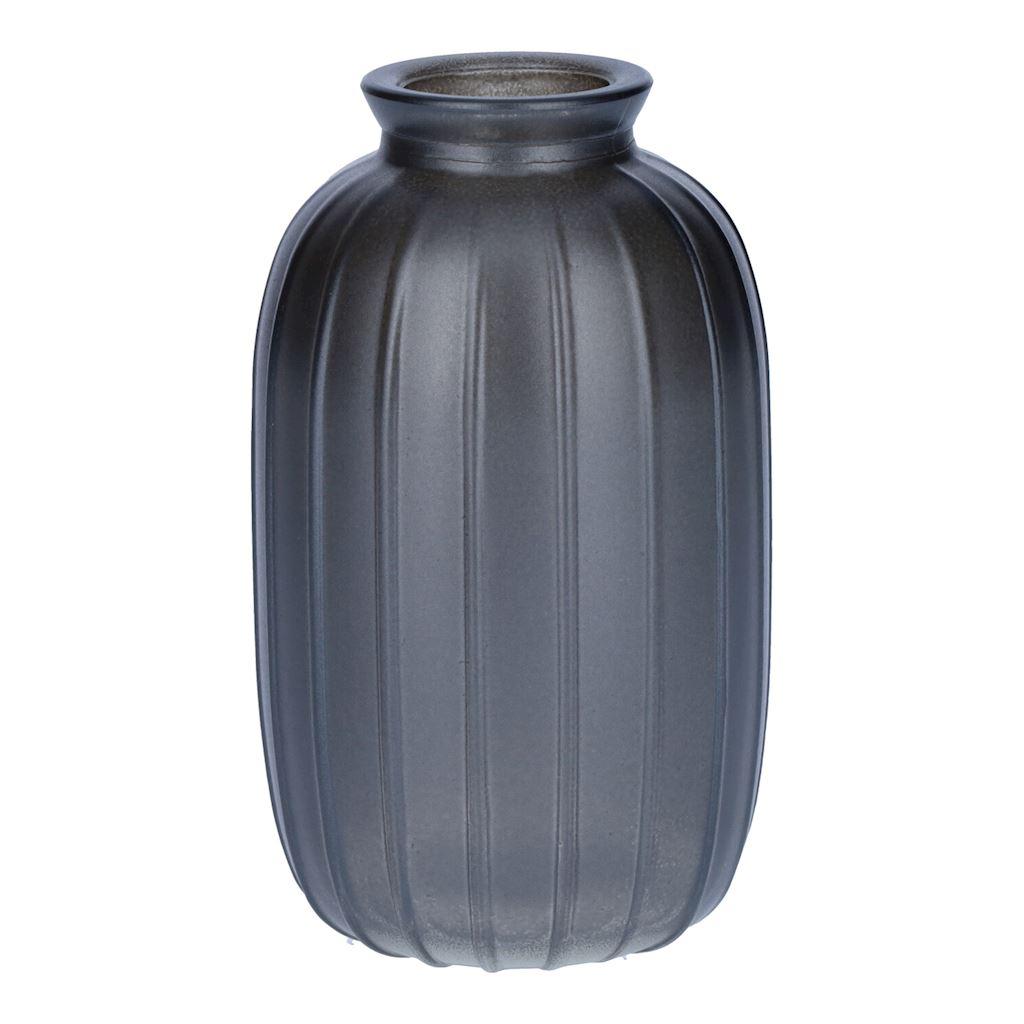 Dekoflasche SILVINA aus Glas, Rillen, grau-metallic, 12cm, Ø7cm