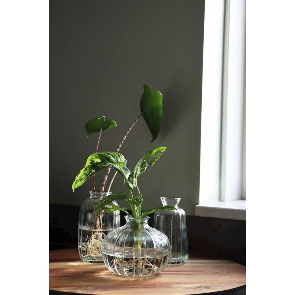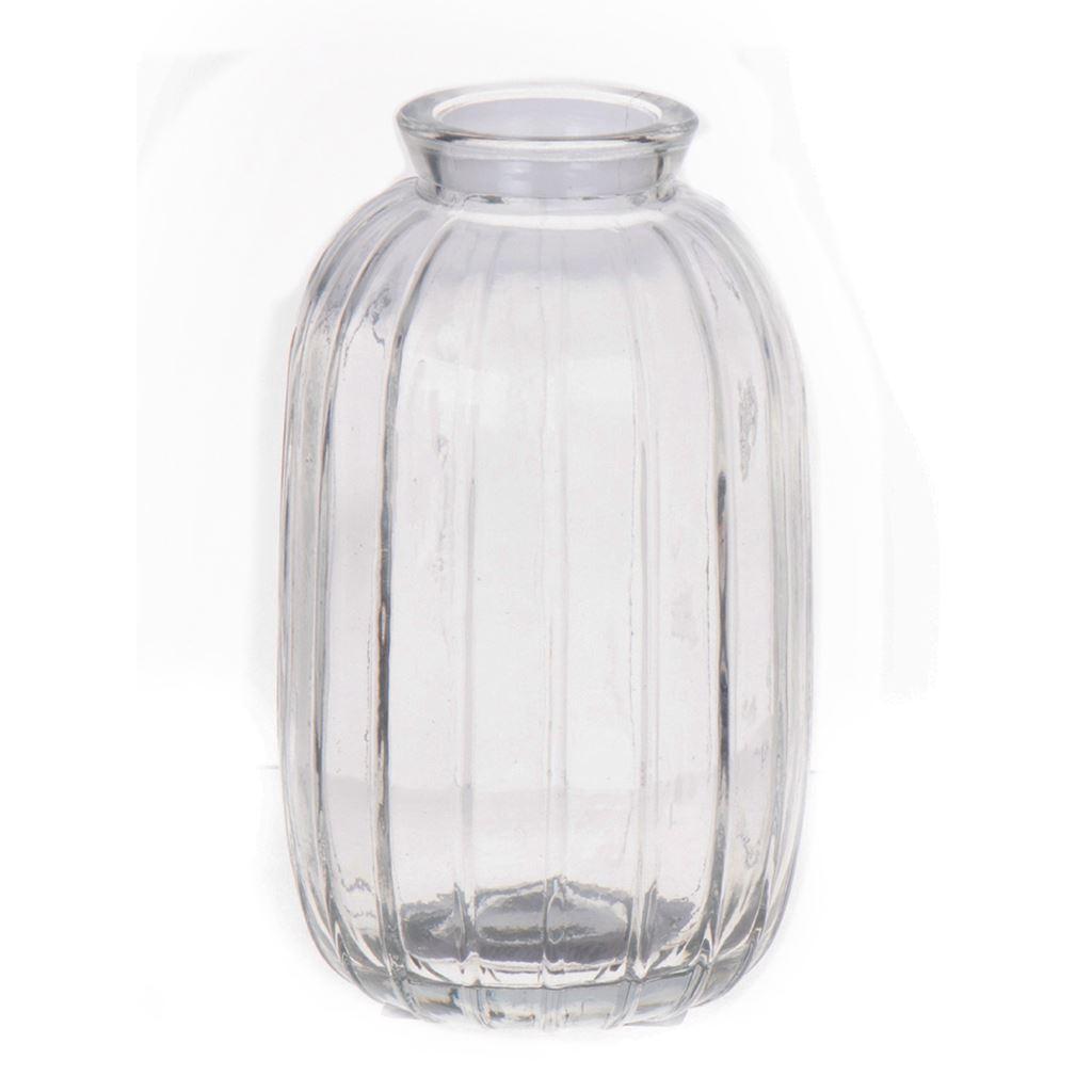 Dekoflasche SILVINA aus Glas, Rillen, klar, 12cm, Ø7cm