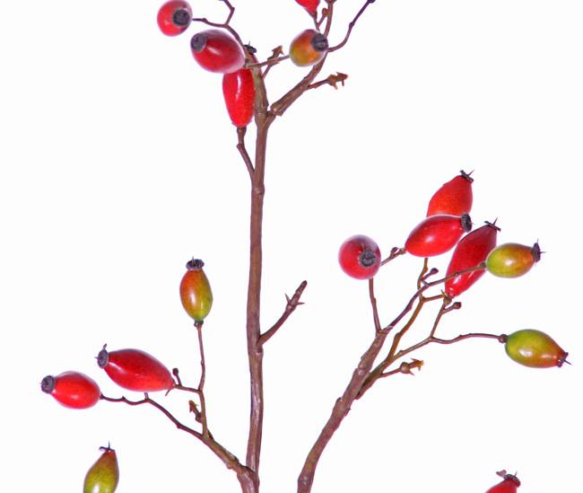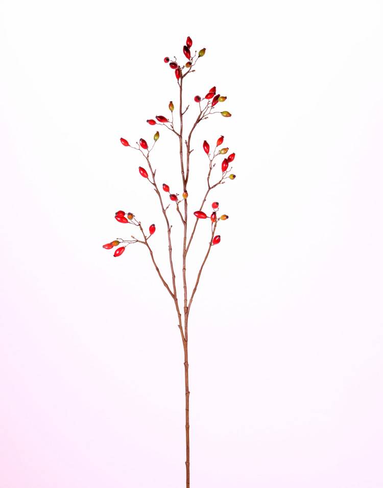 Dekopflanze Heckenrosen Zweig EDITH mit Früchten, rot, 110cm