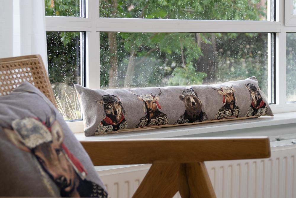 Dekoratives Zugluftkissen EMTIS mit winterlichem Tiermotiv, grau, 90x15x20cm