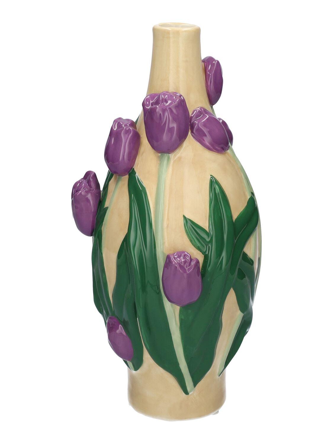 Dekovase LIMEA aus Dolomit, 3D Tulpen, beige-lila-grün, 30cm, Ø15cm