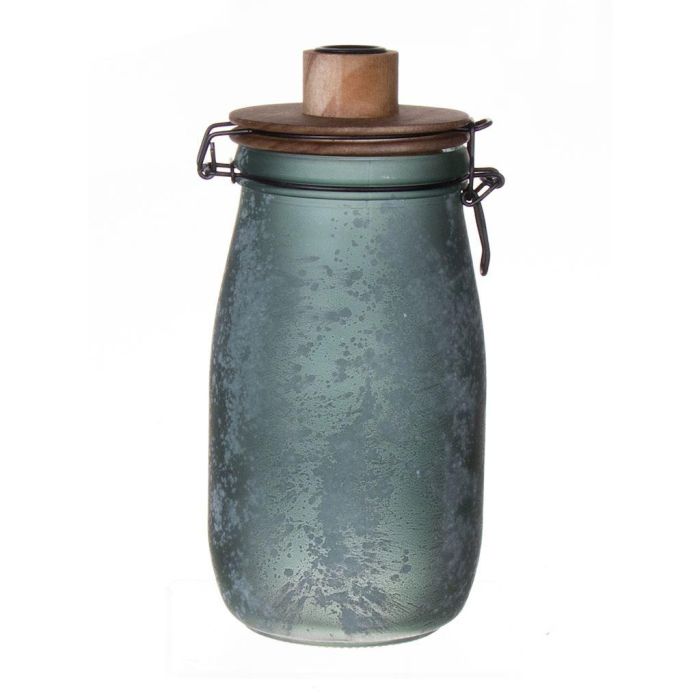 Drahtbügelglas ANNEDORE mit Stabkerzenhalter, Frost-Optik, petrolgrün, 24,5cm, Ø11,5cm