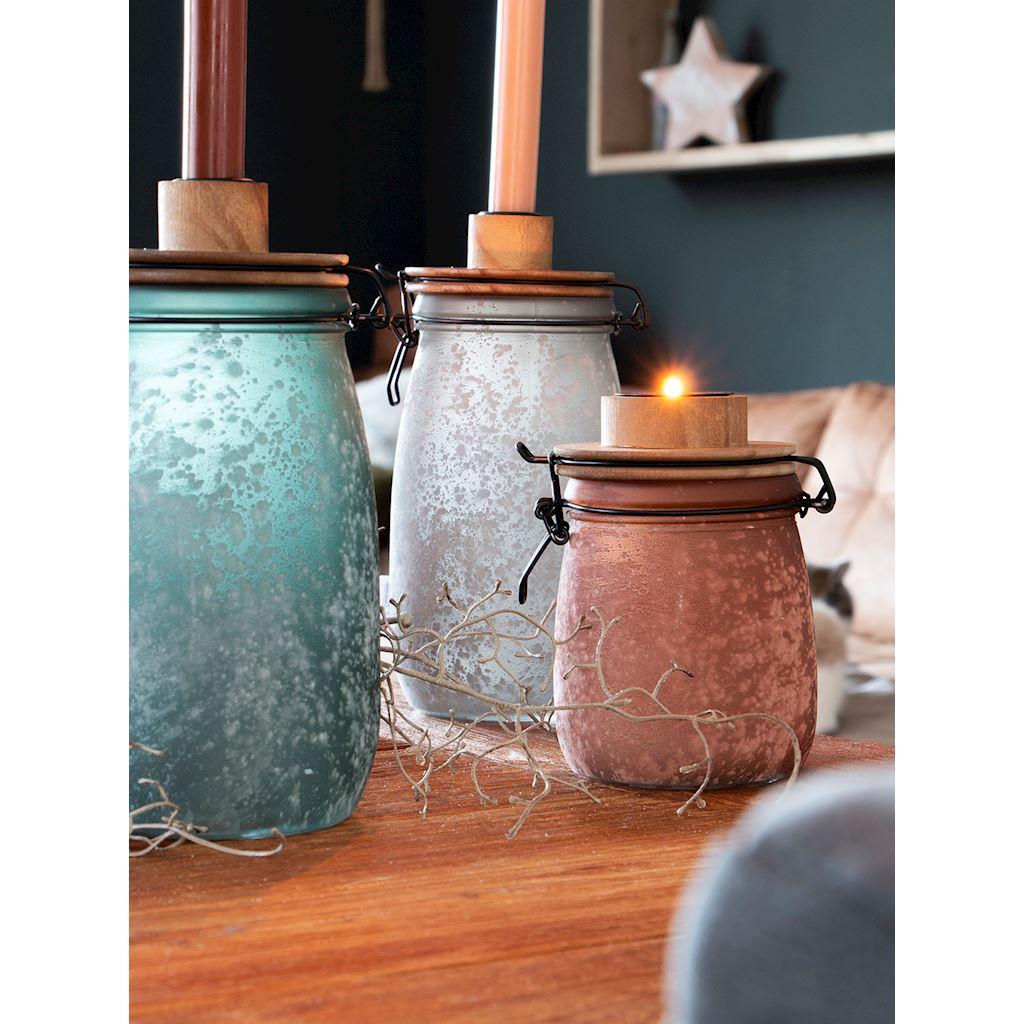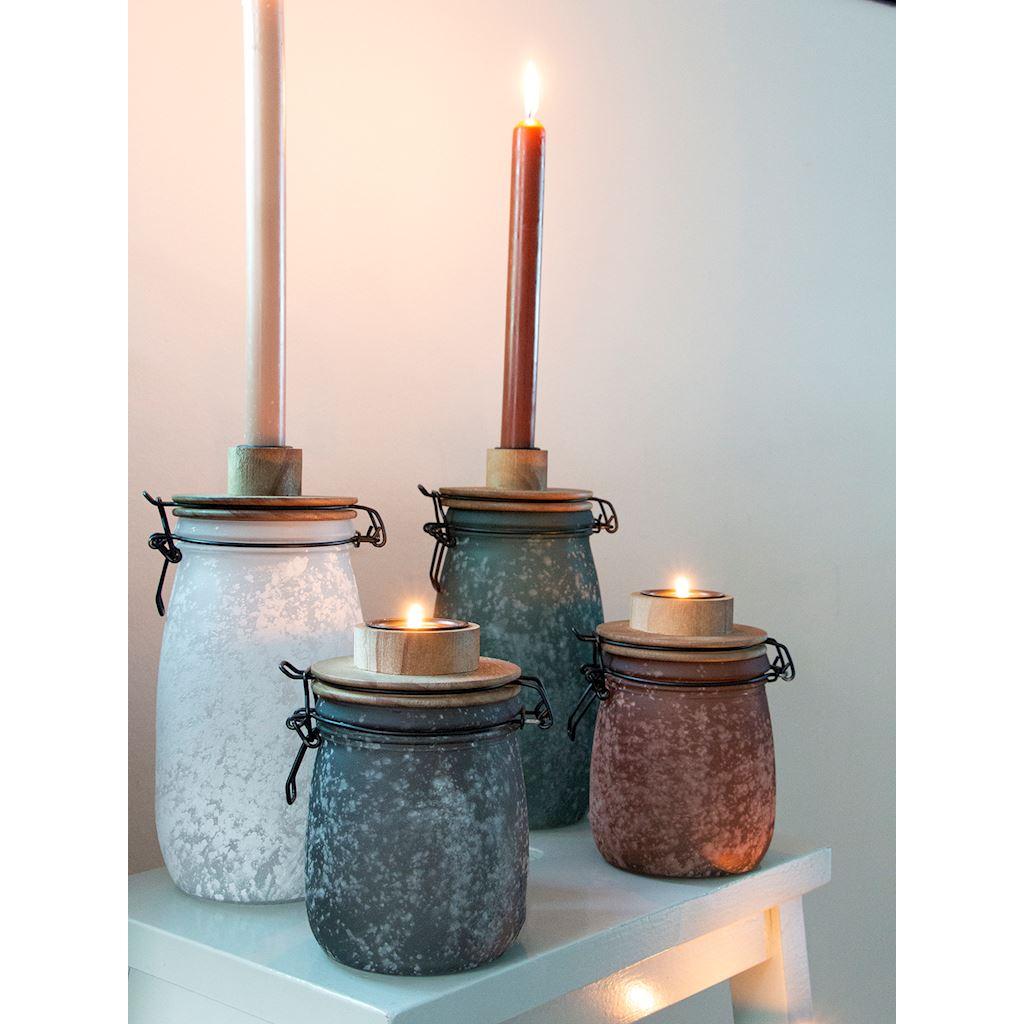 - In dem Glasgefäß können Sie z.B. einen kleinen Vorrat an Teelichtern aufbewahren