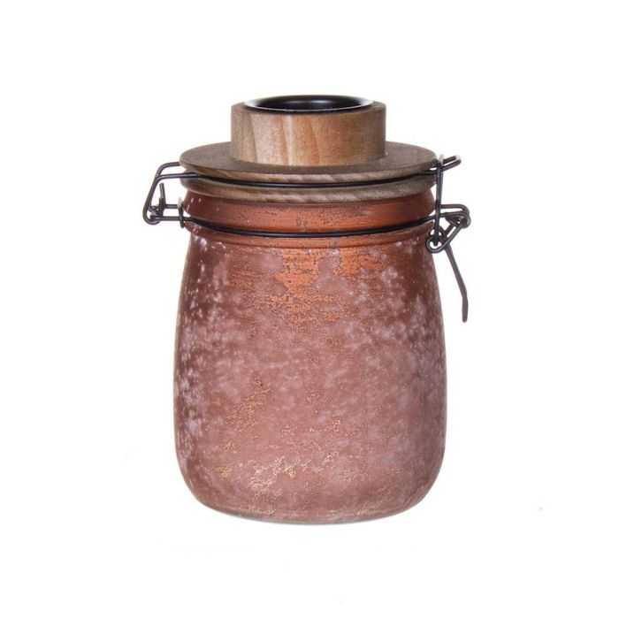 Drahtbügelglas ANNEDORE mit Teelichthalter, Frost-Optik, amber, 15,5cm, Ø10,5cm