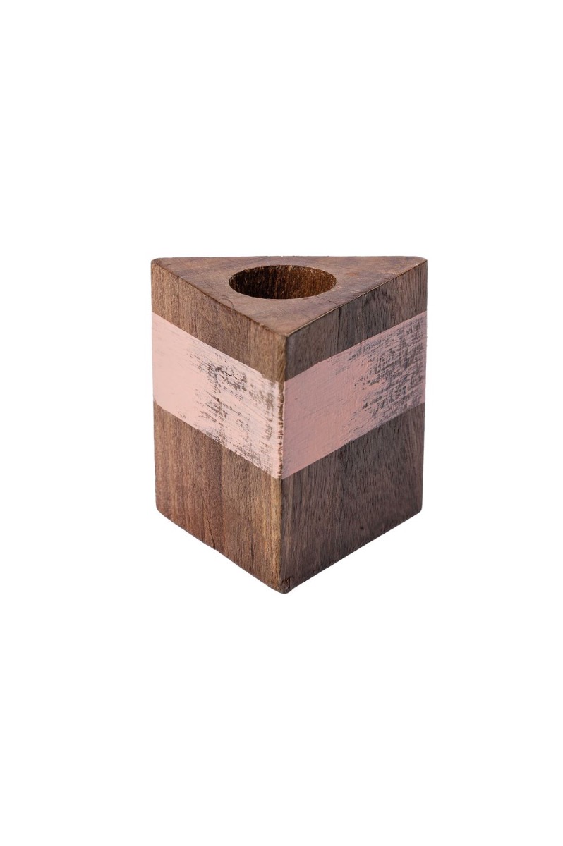 Dreieckiger Holzleuchter KARLINA für Stabkerzen bis ca. Ø2,5cm, natur-lachs, 6x6x6cm