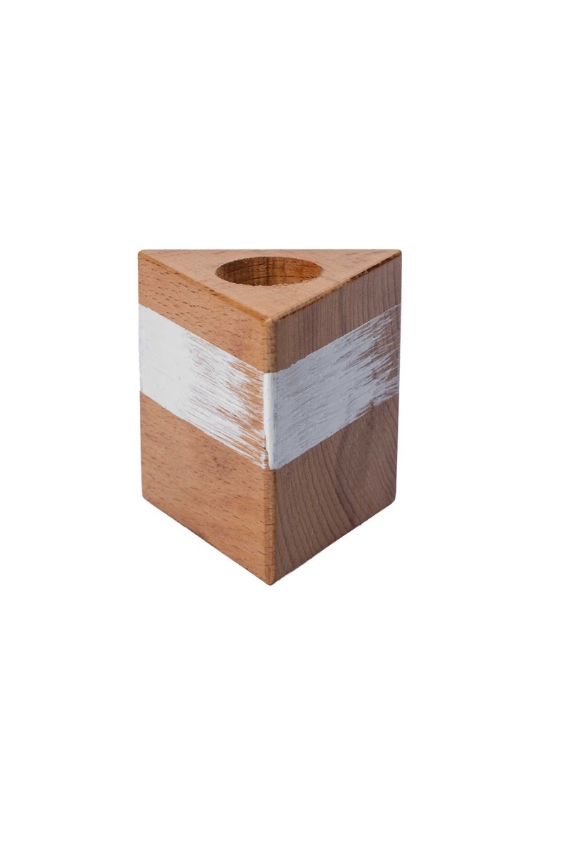Dreieckiger Holzleuchter KARLINA für Stabkerzen bis ca. Ø2,5cm, natur-weiß, 6x6x6cm