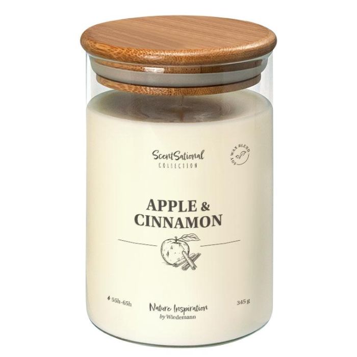 Duftkerze FERDINANDINE im Glas, Sojawachsmischung, Apple&Cinnamon, elfenbein, 12,5cm, Ø8cm, 55h - Made in Germany