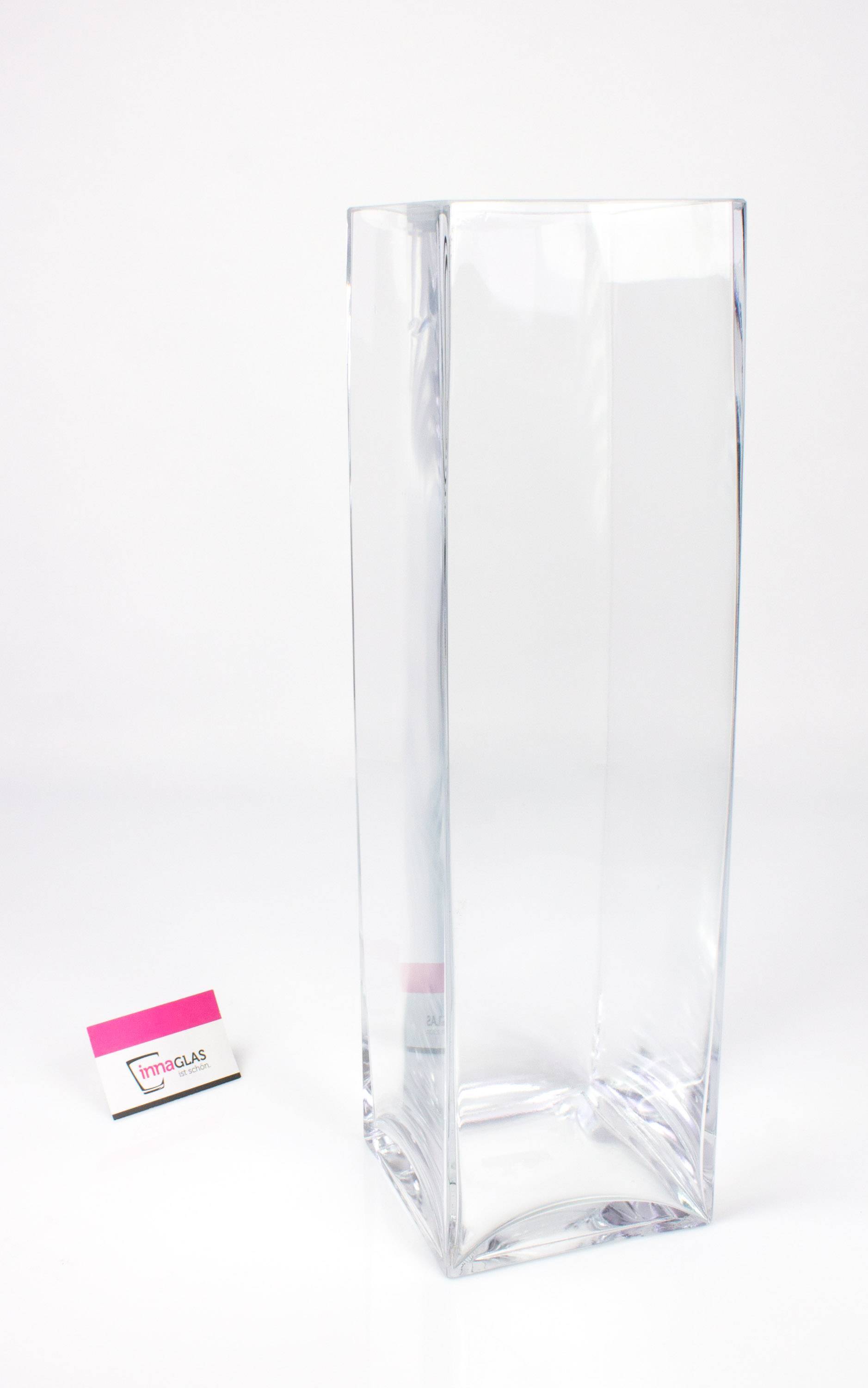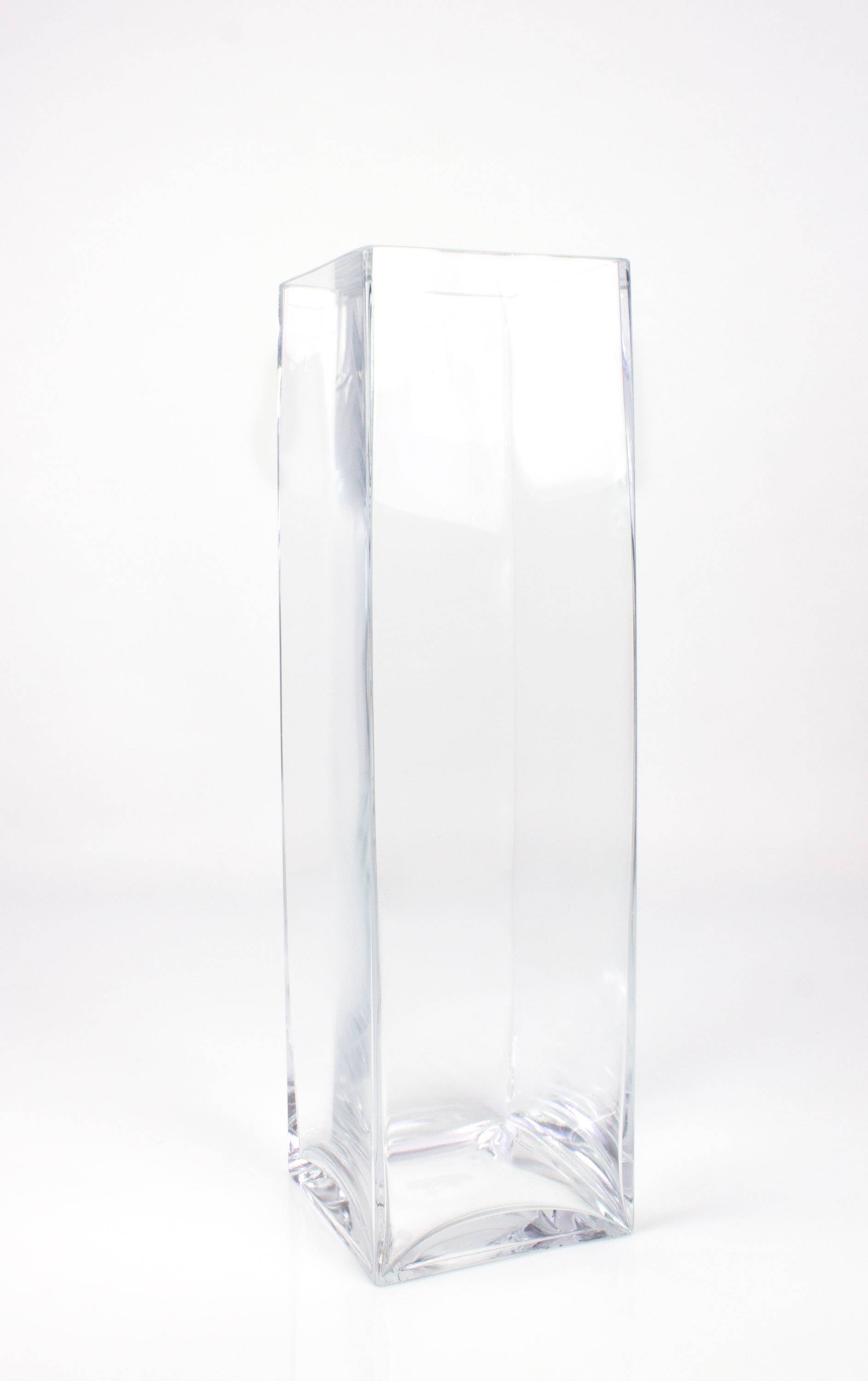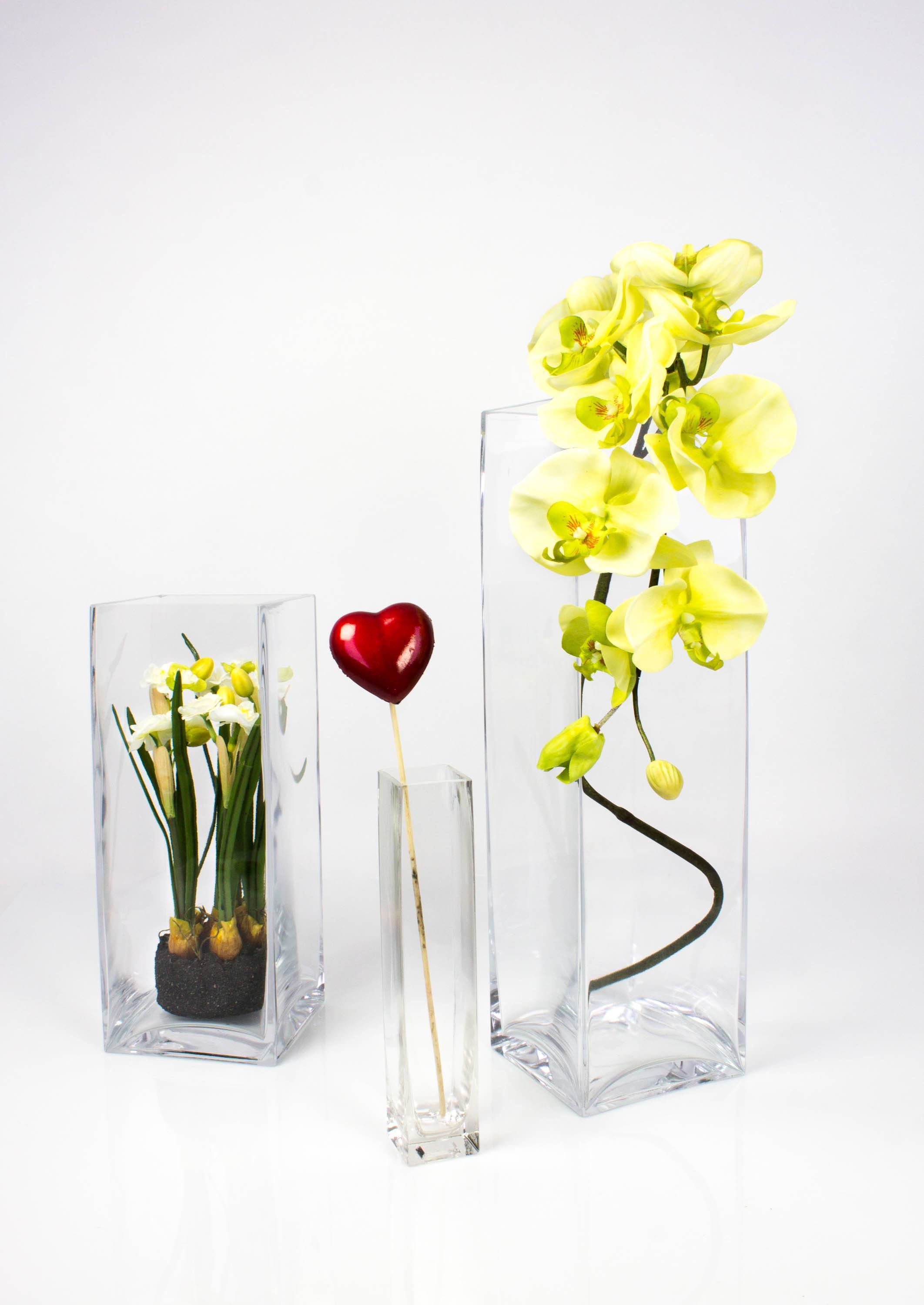 Große eckige Tischvase JACK mit den Maßen 14 x 14 x 49 cm. Dieses Glas bietet genügend Platz für alle eure Dekoideen mit Blumen, Zweigen, Sand und Steinen.