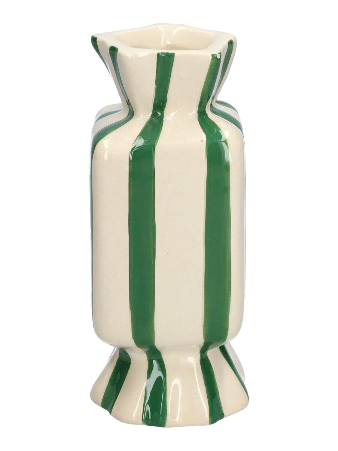 Eckige Einzelblumenvase Bonbon AMIEL aus Keramik, mit Längsstreifen, grün-weiß, 6,5x6,5x15cm