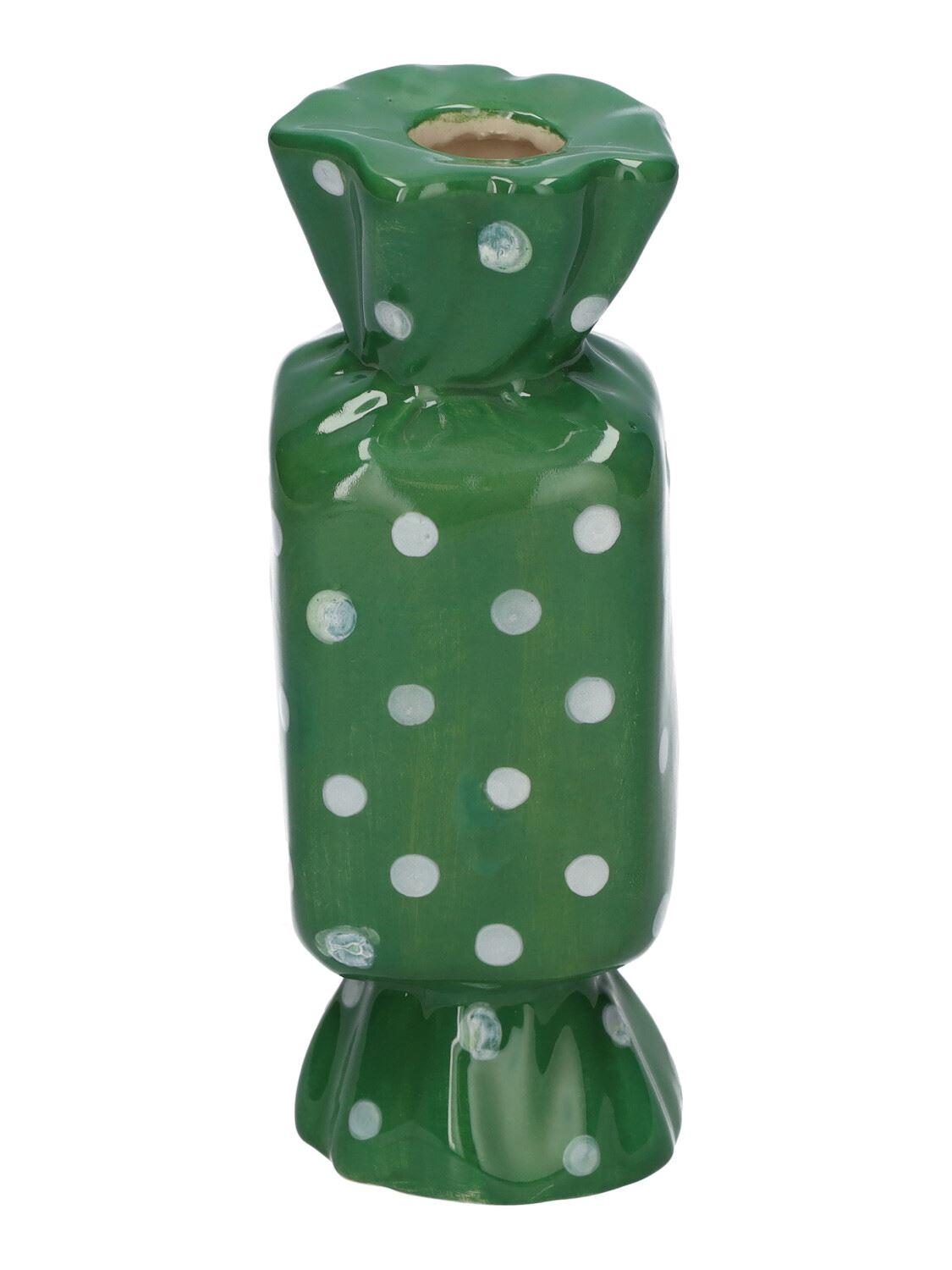 Eckige Einzelblumenvase Bonbon AMIEL aus Keramik, mit Punkten, grün-weiß, 4,5x4,5x11,5cm