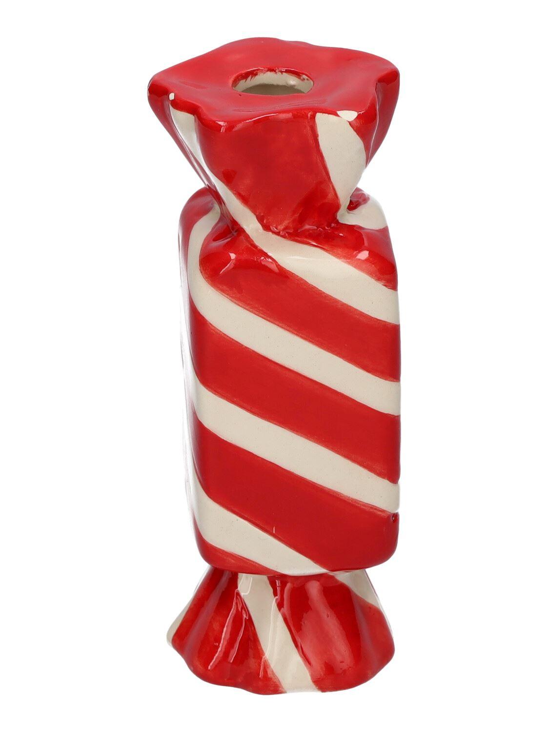 Eckige Einzelblumenvase Bonbon AMIEL aus Keramik, mit schrägen Linien, rot-weiß, 4,5x4,5x11,5cm