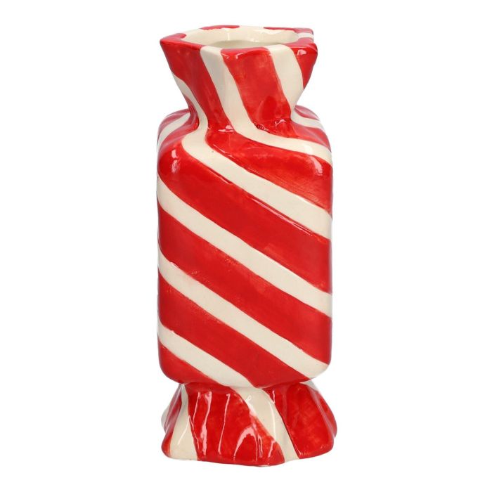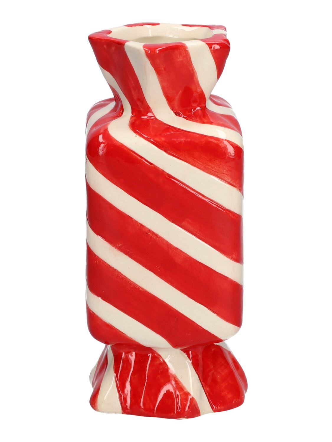 Eckige Einzelblumenvase Bonbon AMIEL aus Keramik, mit schrägen Linien, rot-weiß, 6,5x6,5x15cm