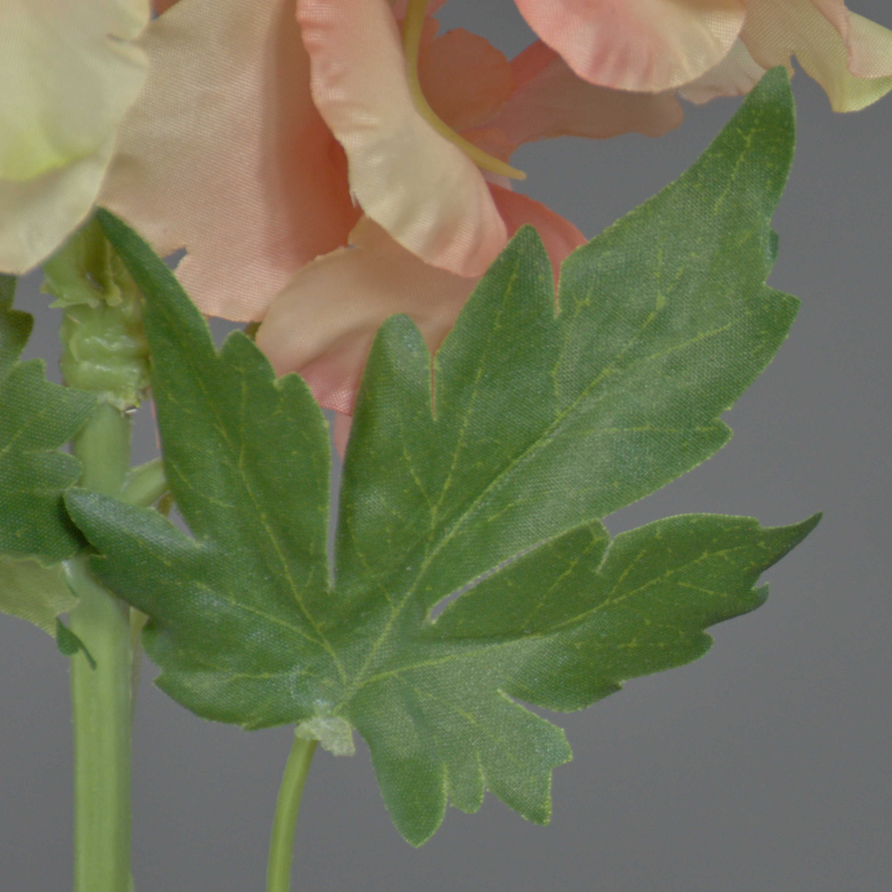 - Die Blütenrispe besteht aus geöffneten Textilblüten, Knospen und Textilblättern