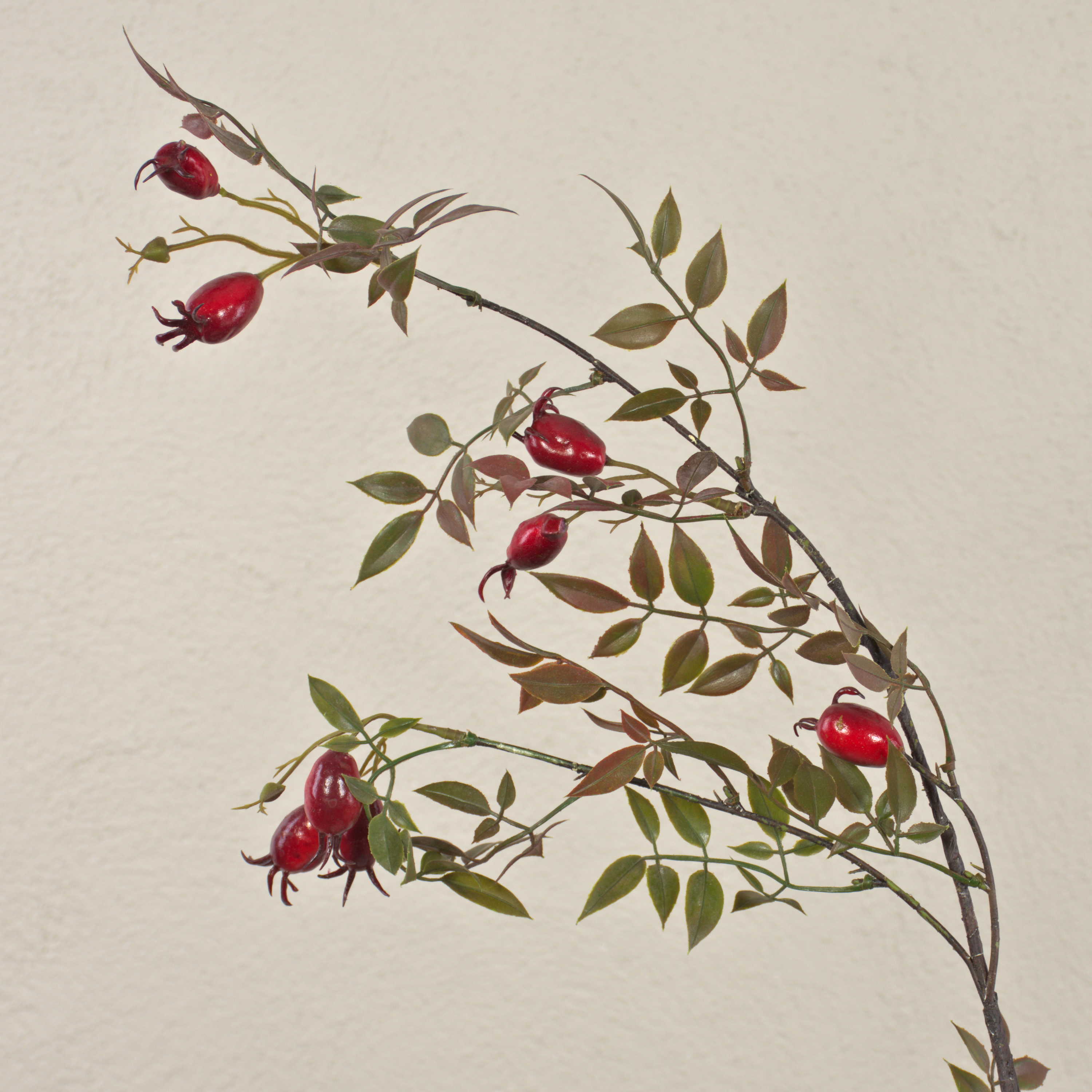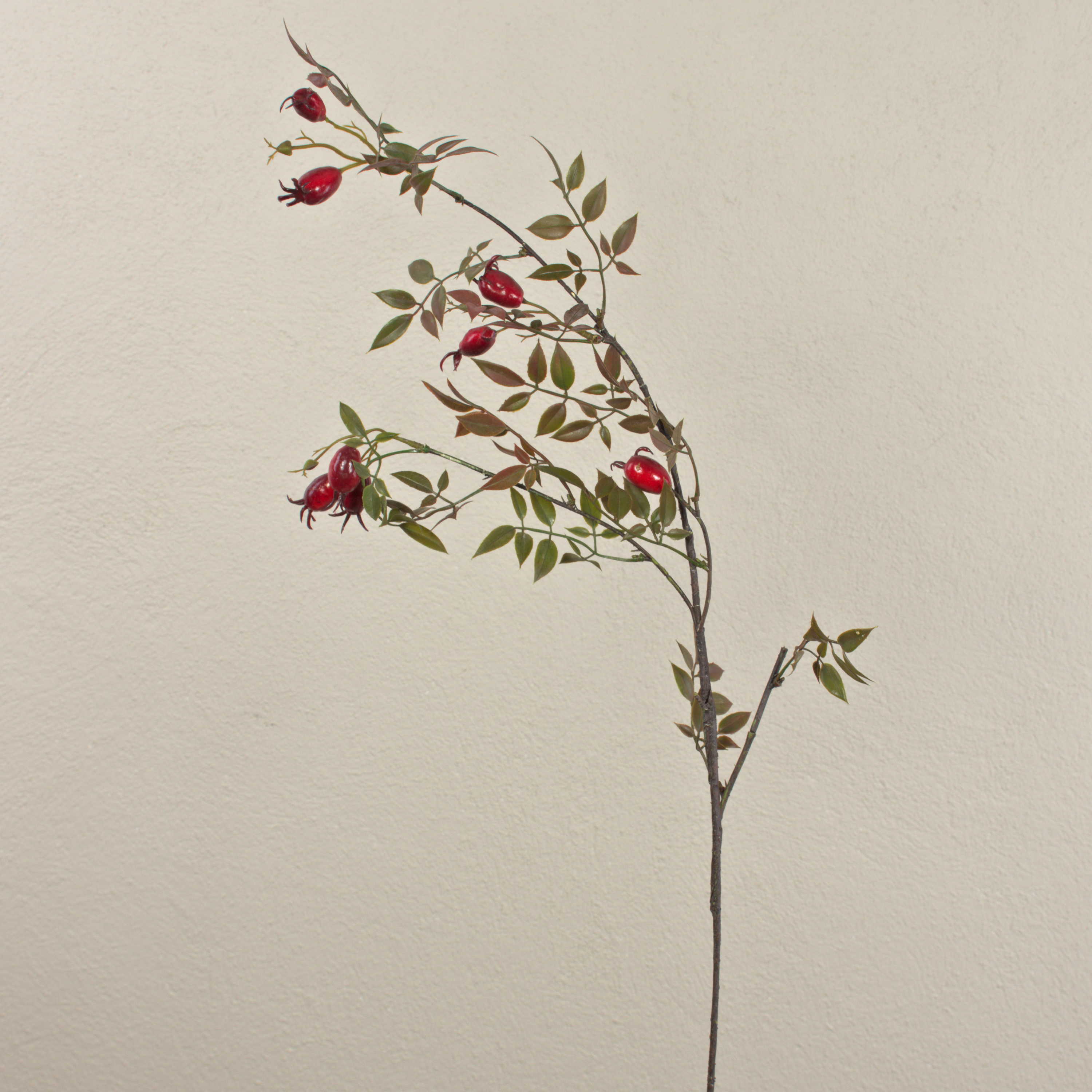 Fake Heckenrosen Zweig WARDALIA mit Hagebutten, rot, 95cm