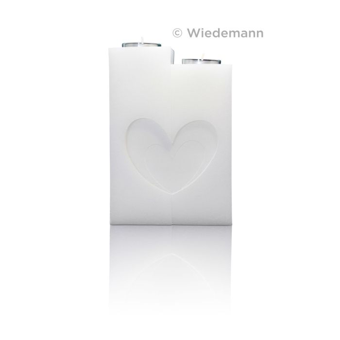 Formenkerze Stufenkerze Rohling LITAH mit Herz, Perlmuttoberfläche, Teelichteinsatz, weiß, 20cm, Ø14cm - Made in Germany