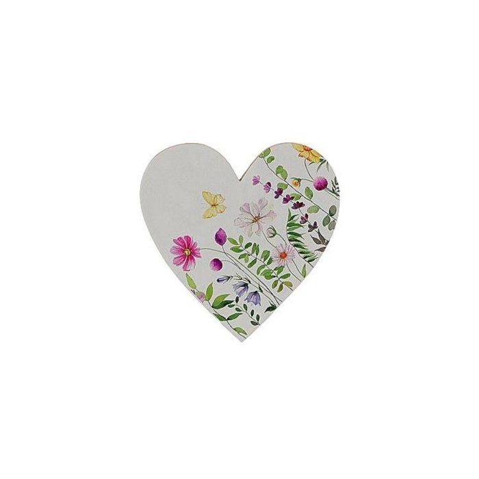 Frühlingsdeko Herz BINKIE mit Blumenmotiv, weiß-bunt, 13,5x2x13,5cm