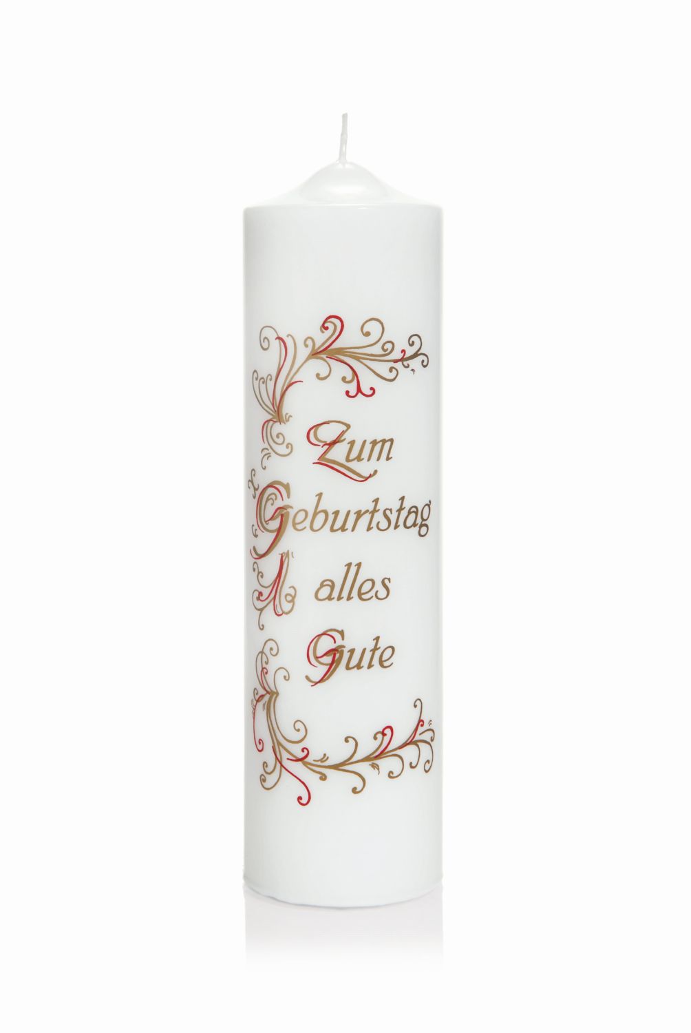 Geburtstagskerze LAWSON mit Spruch, verziert, weiß-gold, 25cm, Ø6,8cm - Made in Germany