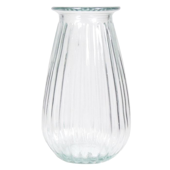 Glas Blumenvase DORITA mit Rillen, klar, 21cm, Ø13cm