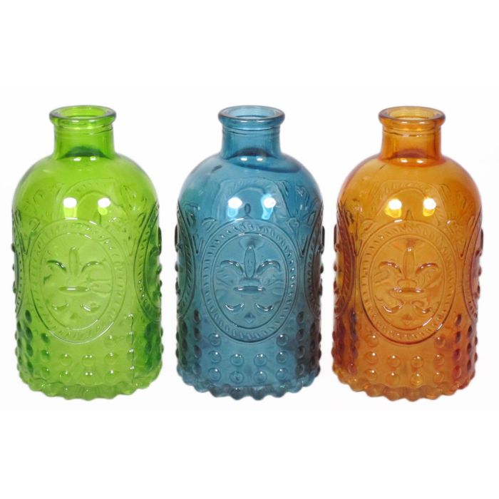 - 3 Flaschen mit originellem Fleur-de-Lis Muster