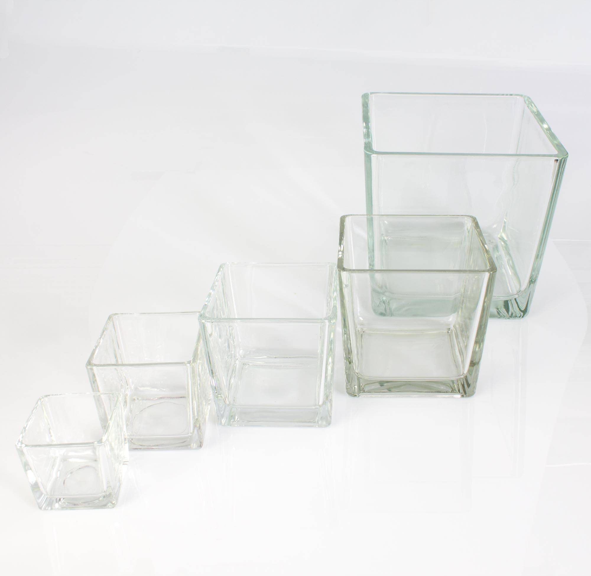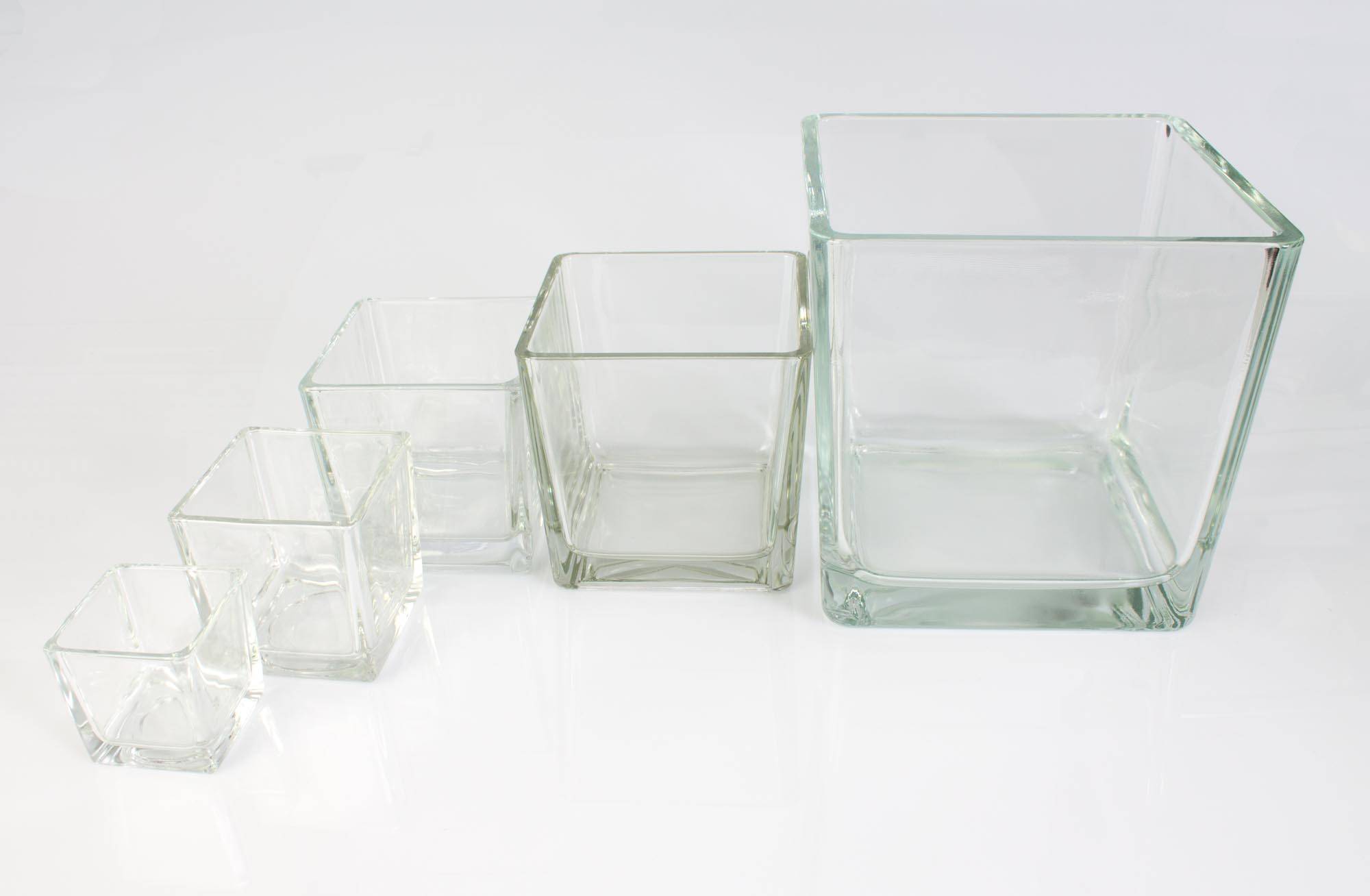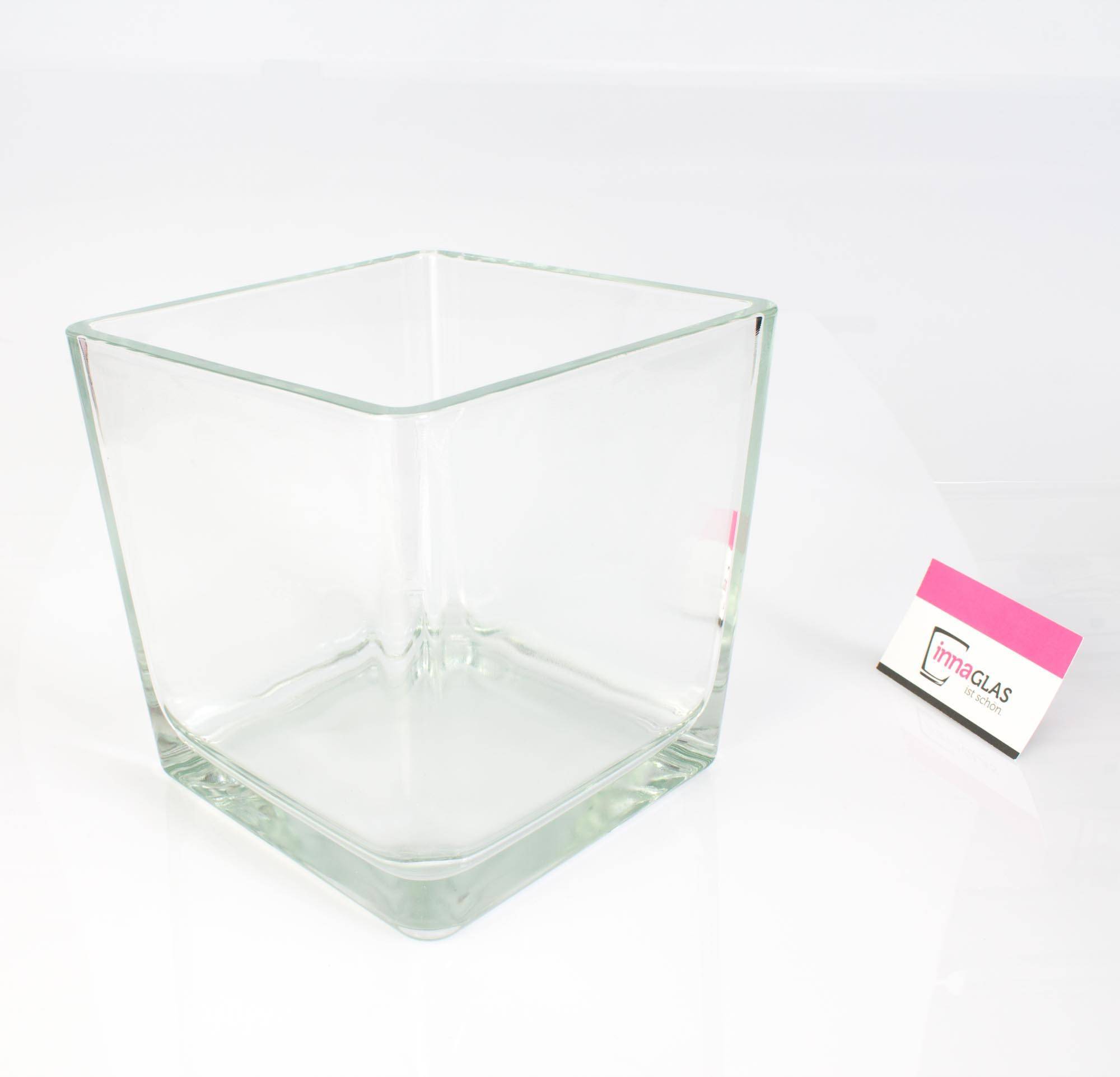 Großes Eckiges Windlicht Glas KIM mit den Maßen 18 x 17,5 x 17,5 cm. In diesem großen Teelichtglas von INNA Glas fühlen sich 1 bis maximal 9 kleine Teelichter heimisch.
