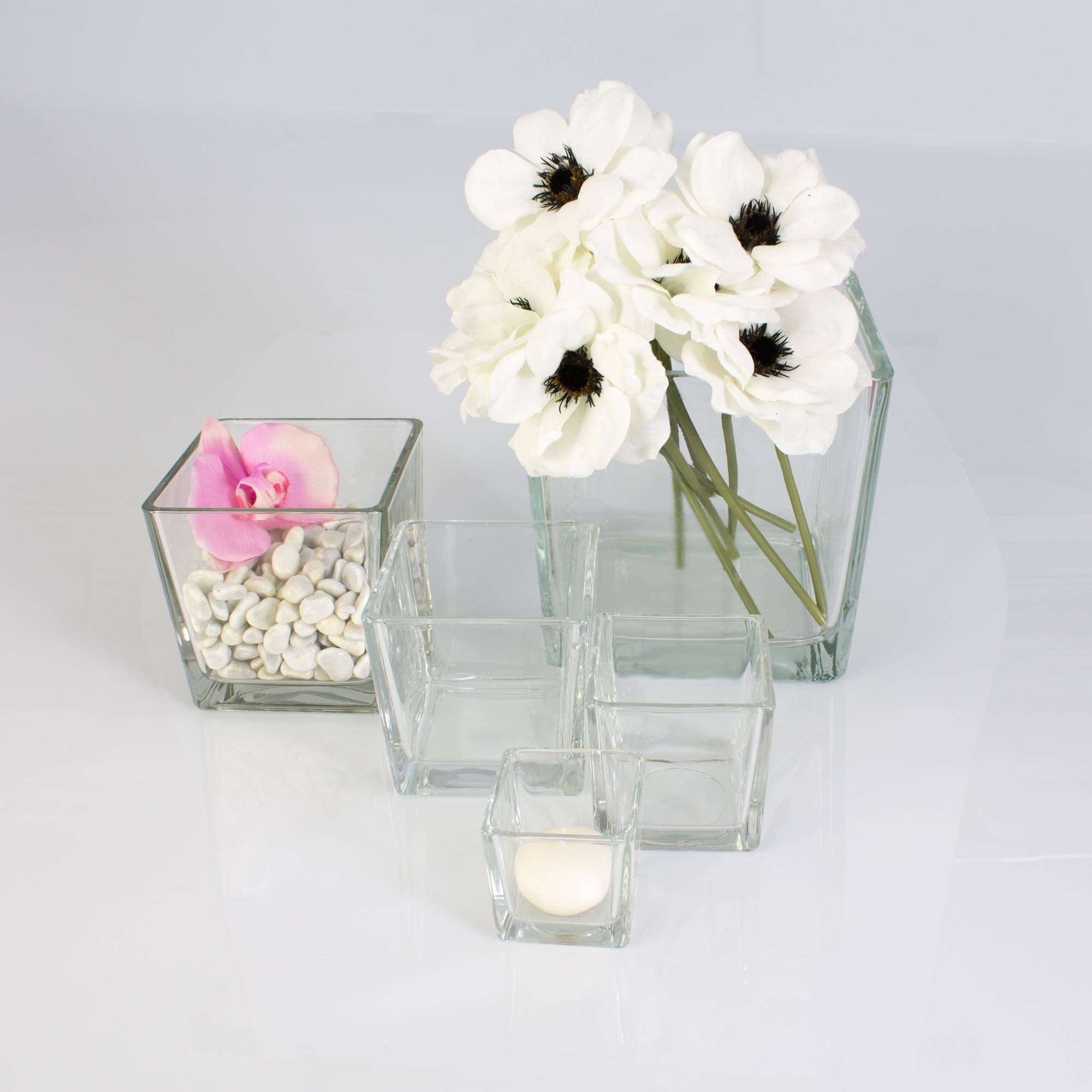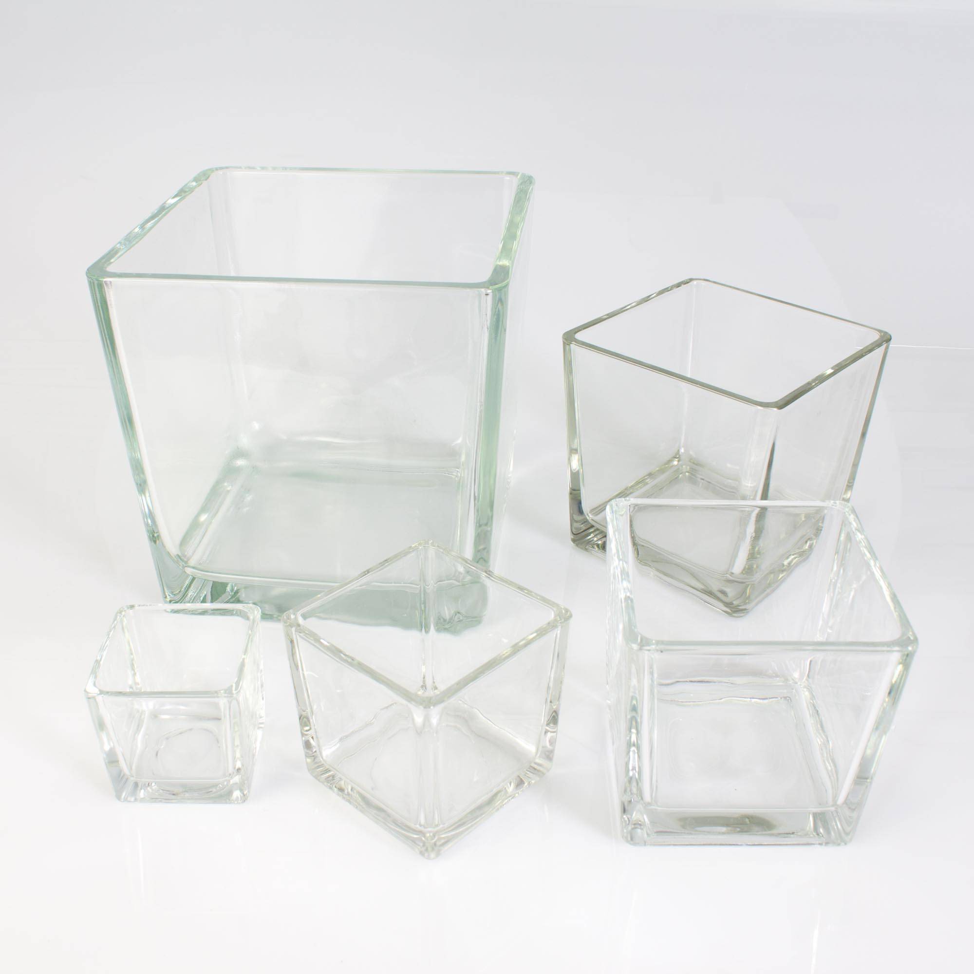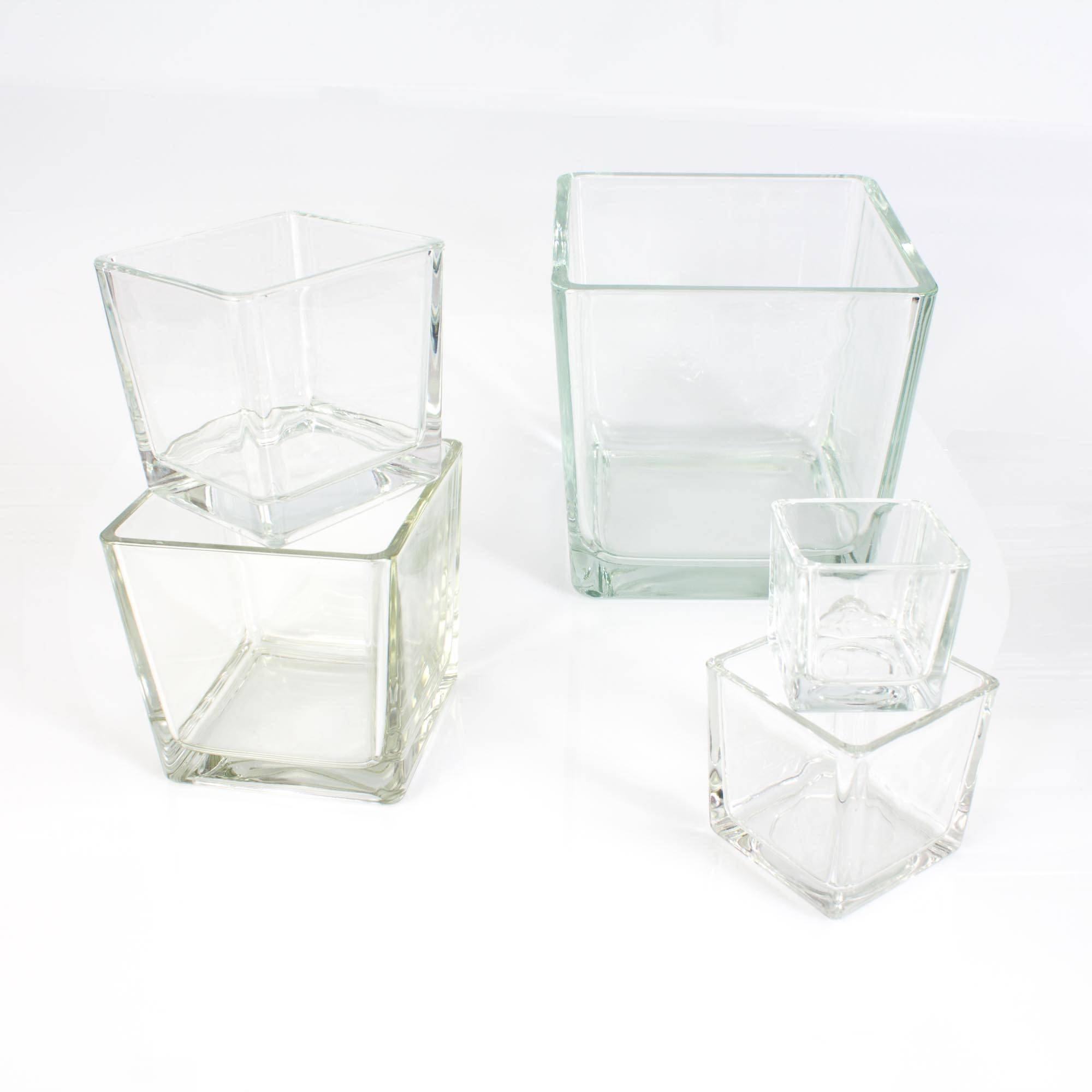 Großes Eckiges Windlicht Glas KIM mit den Maßen 18 x 17,5 x 17,5 cm. In diesem großen Teelichtglas von INNA Glas fühlen sich 1 bis maximal 9 kleine Teelichter heimisch.