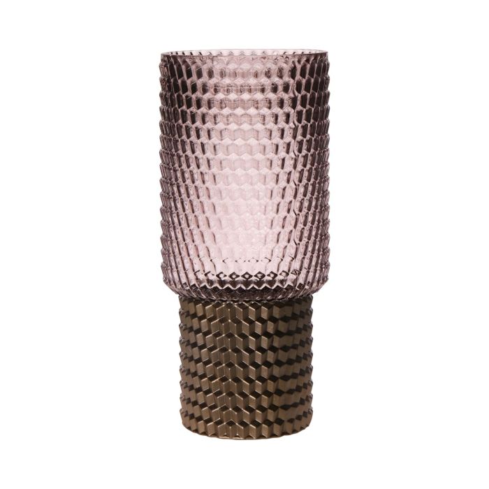 Glas Vase MARICHU mit Struktur, gold-rosa-klar, 27cm, Ø12cm