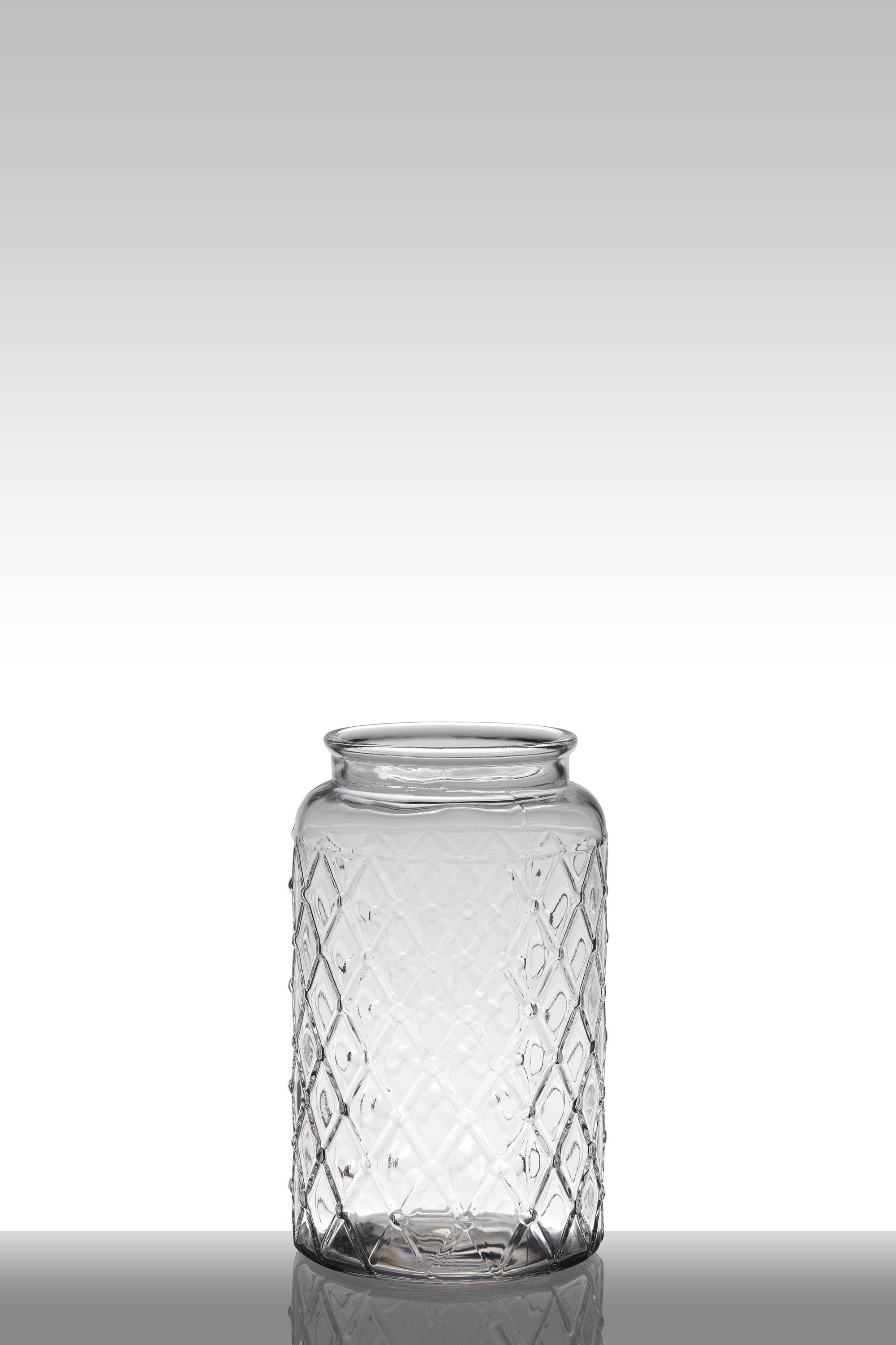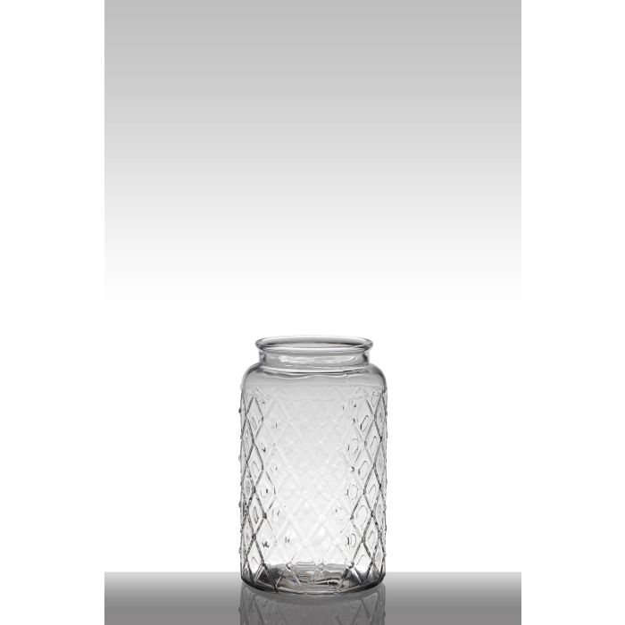Glas Windlicht ROSIE mit Rautenmuster, klar, 26,5cm, Ø16cm
