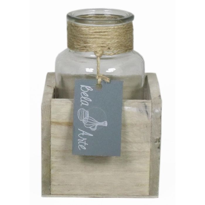 Glasflasche LORRIE in Holzkiste, klar, 9x9x13cm