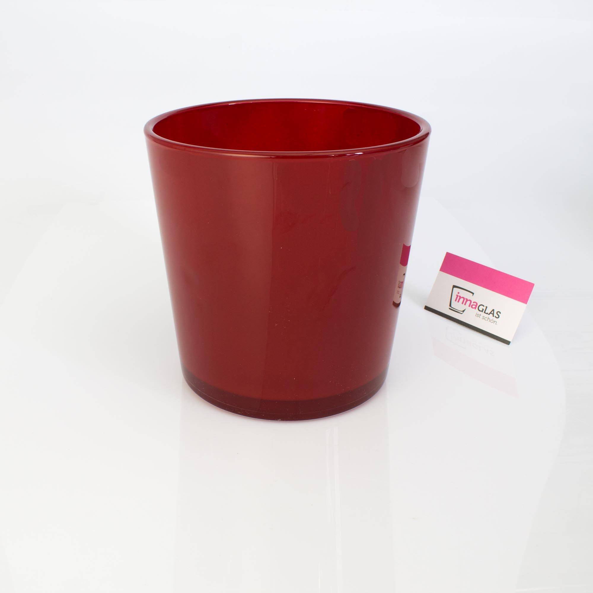 Großer Blumentopf ALENA in Farbe rot von INNA Glas. Der Pflanzkübel ist mit seiner Größe 19 cm hoch / Durchmesser 18,5 cm ideal für kleine Bäumchen wie Yucca, Dracaena, usw.