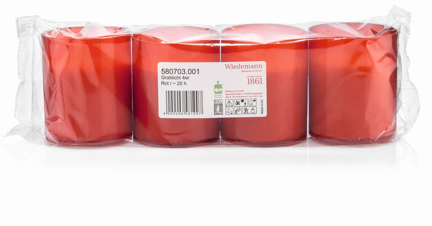 Grablicht JESENIA, 4 Stück, rot-weiß, 5,9cm, Ø5cm, 25h