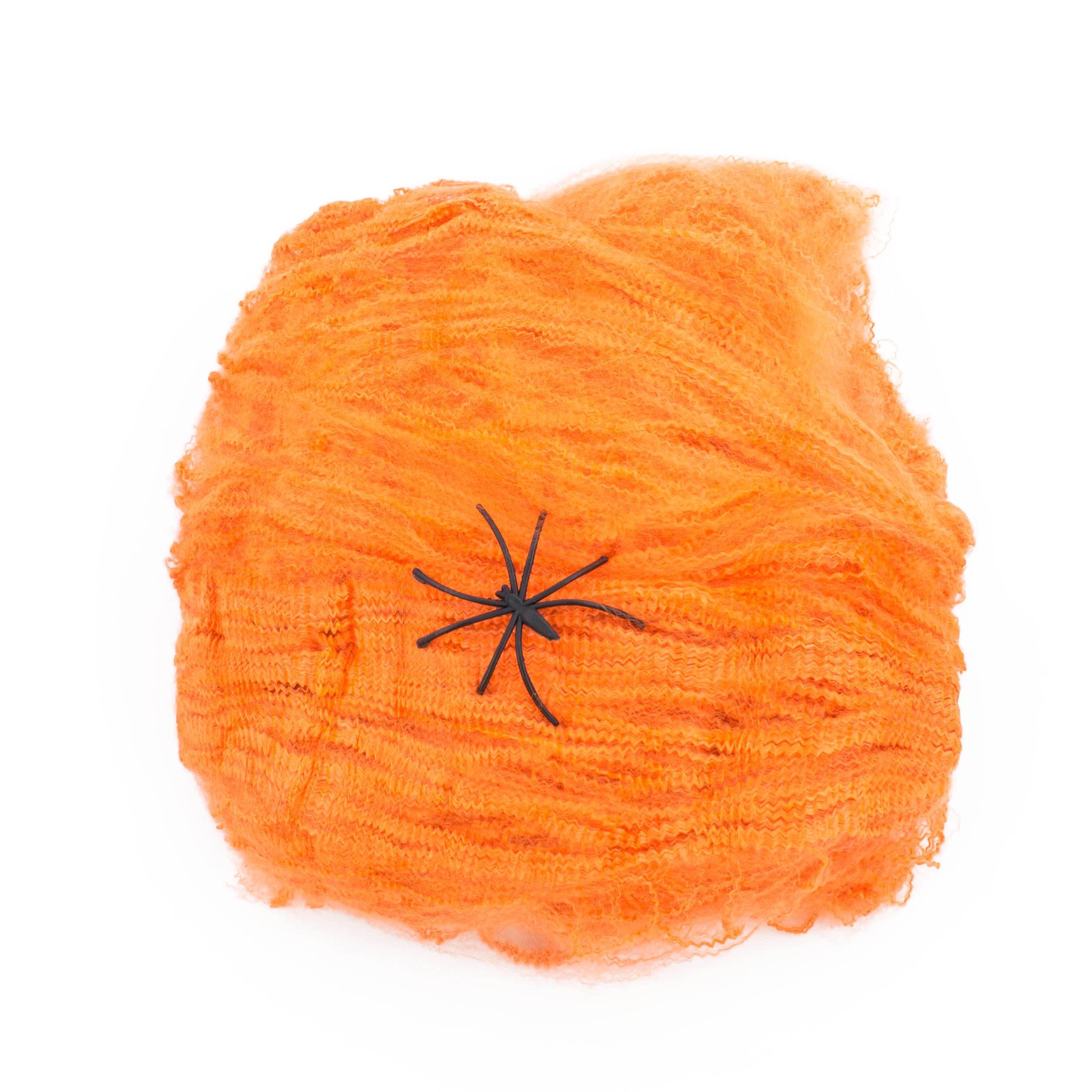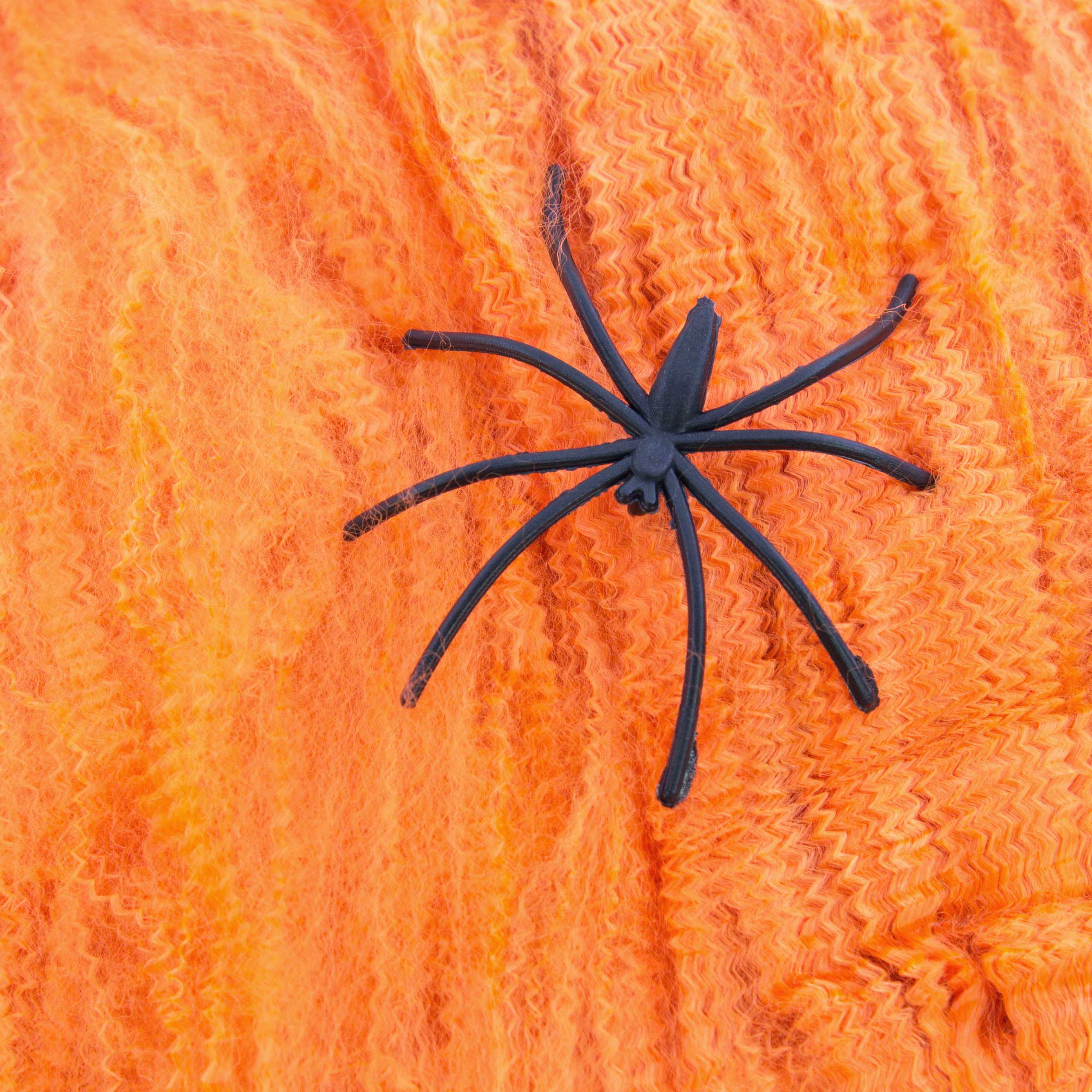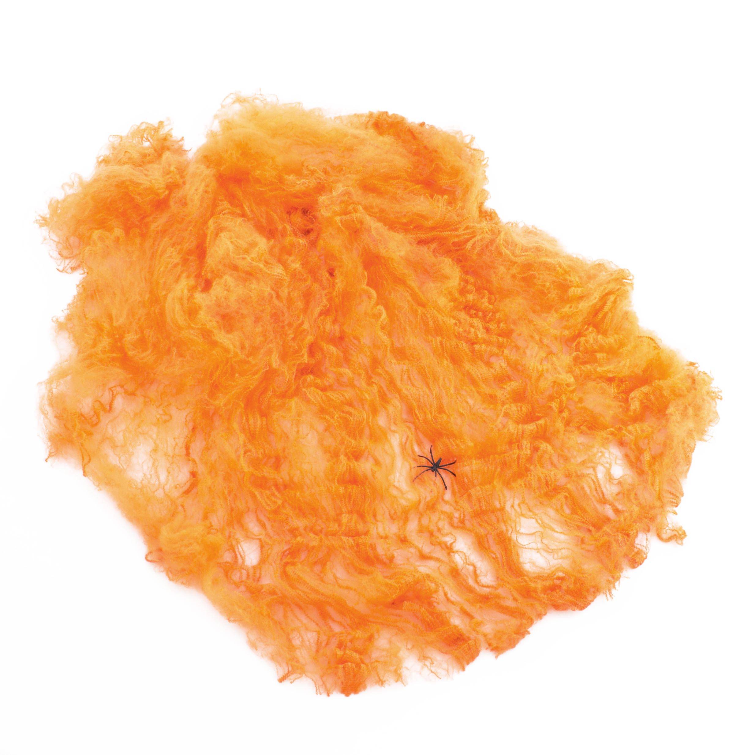 Halloween Deko Spinnennetz / Spinnweben FORMIA mit 1 schwarzen Spinne, orange UV-Aktiv, 50g