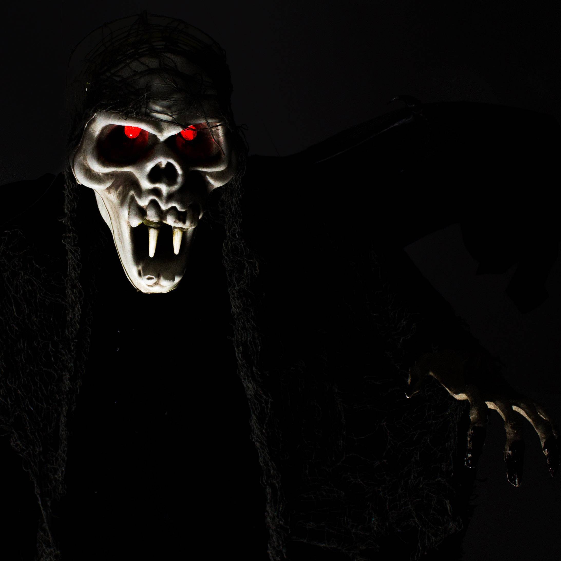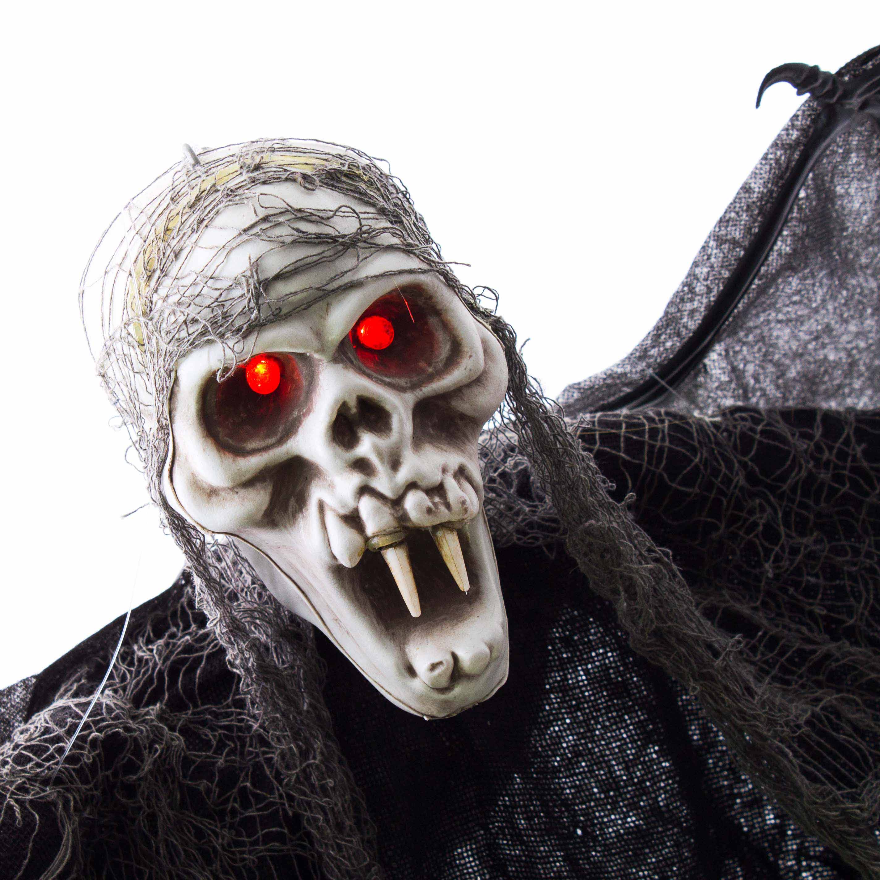 Halloween Dekofigur Skelett Geist ALFIE mit Fledermausflügeln, LEDs, 85cm