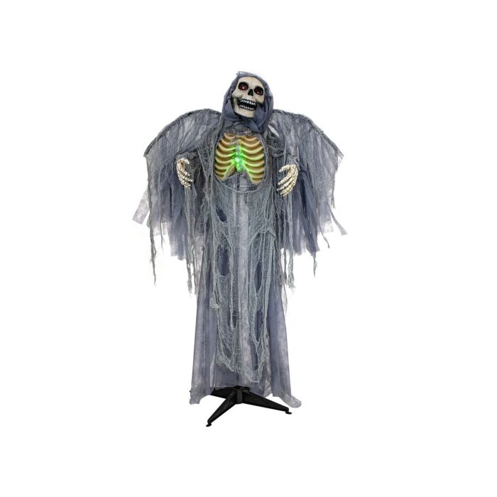 - Mit grauem löchrigen Gewand und Flügeln, skelettiertes Gesicht mit grinsenden Mund, tiefliegenden Augen mit rot blinkenden LEDs, der Brustkorb mit den freiliegenden Rippen ragt aus einem großen Loch im Stoff hervor, welcher mit grün blinkenden LEDs gruselig in Szene gesetzt wird